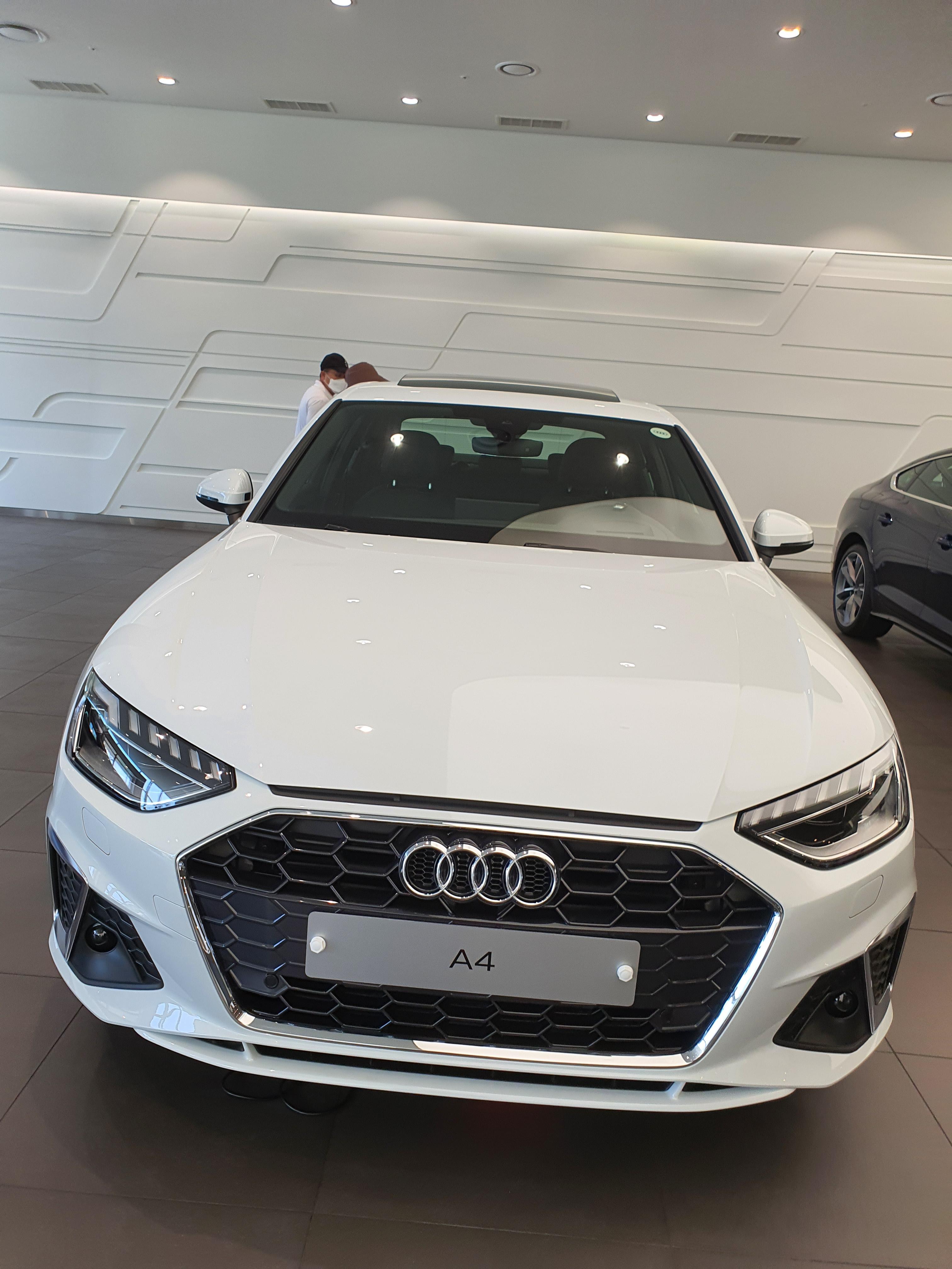 "간단 시승" 시승차가 준비되어 있어 바로 시승을 갈 수 있었다. 시승 시 타고 나간 차는, 프리미엄 등급이 아닌, 일반등급의 A4 였다. "일반 A4 프리미엄 등급 대비 다른 점" 1. 앞 라디에이터 그릴