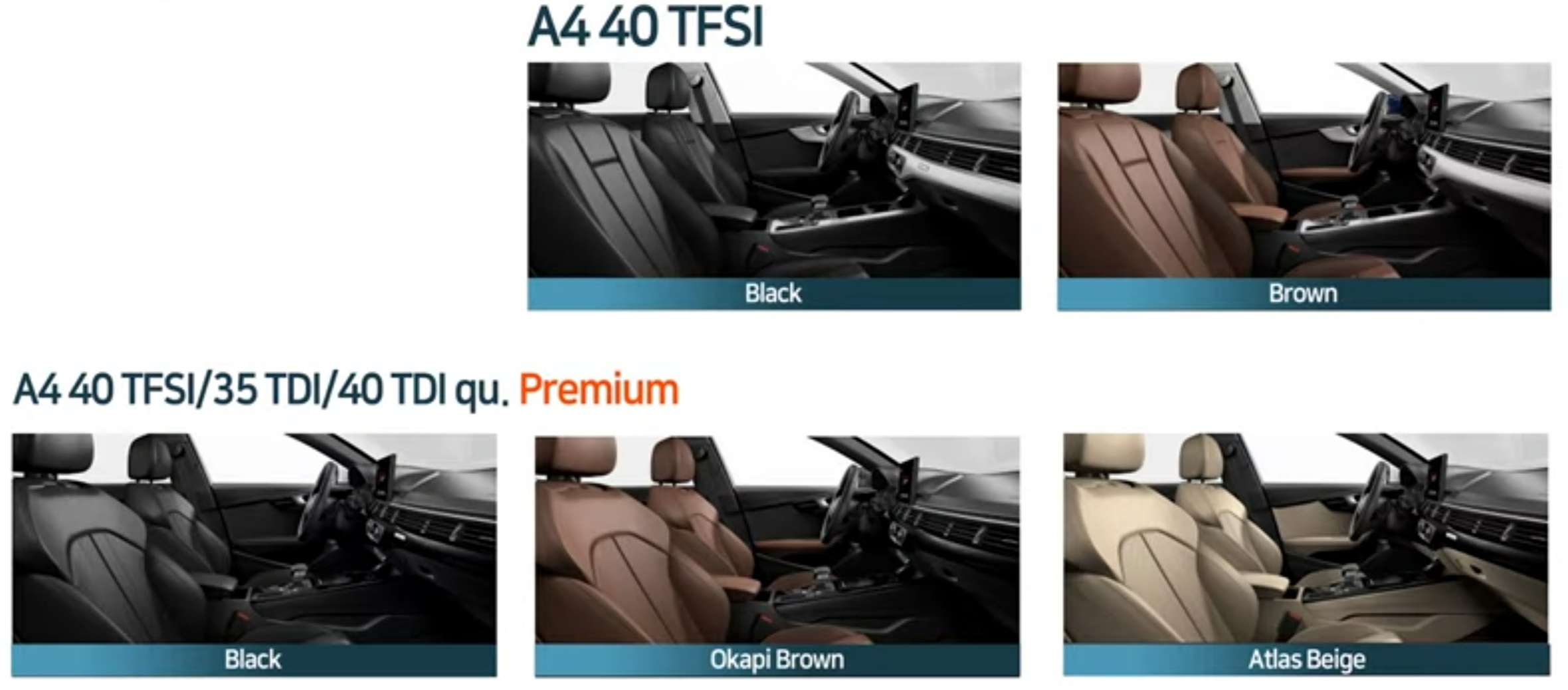 "A4는 프리미엄 등급에만 3가지 시트 중 한 가지를 선택할 수 있다."