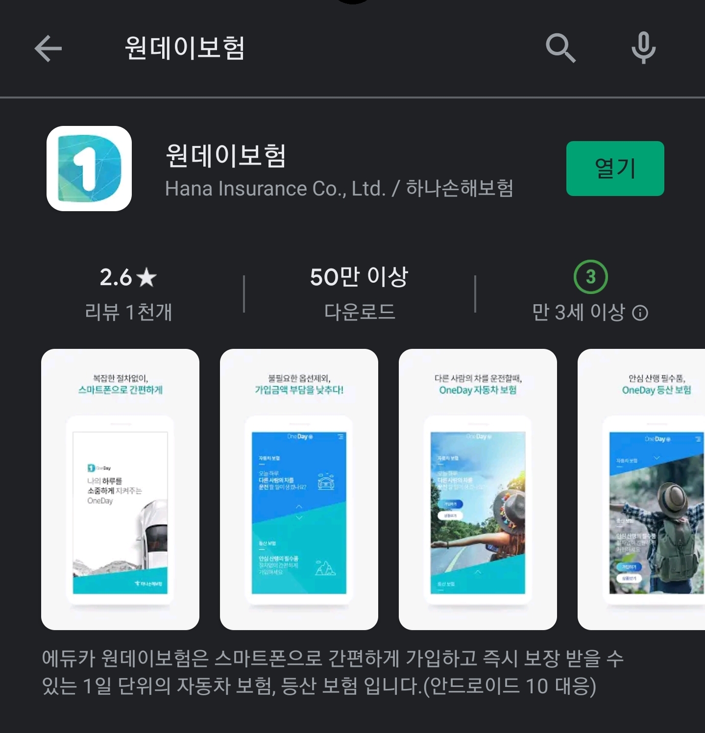 PLAY 스토어 또는 앱스토어에서 원데이 보험이라고 검색하면, 나오는 앱이 있다.