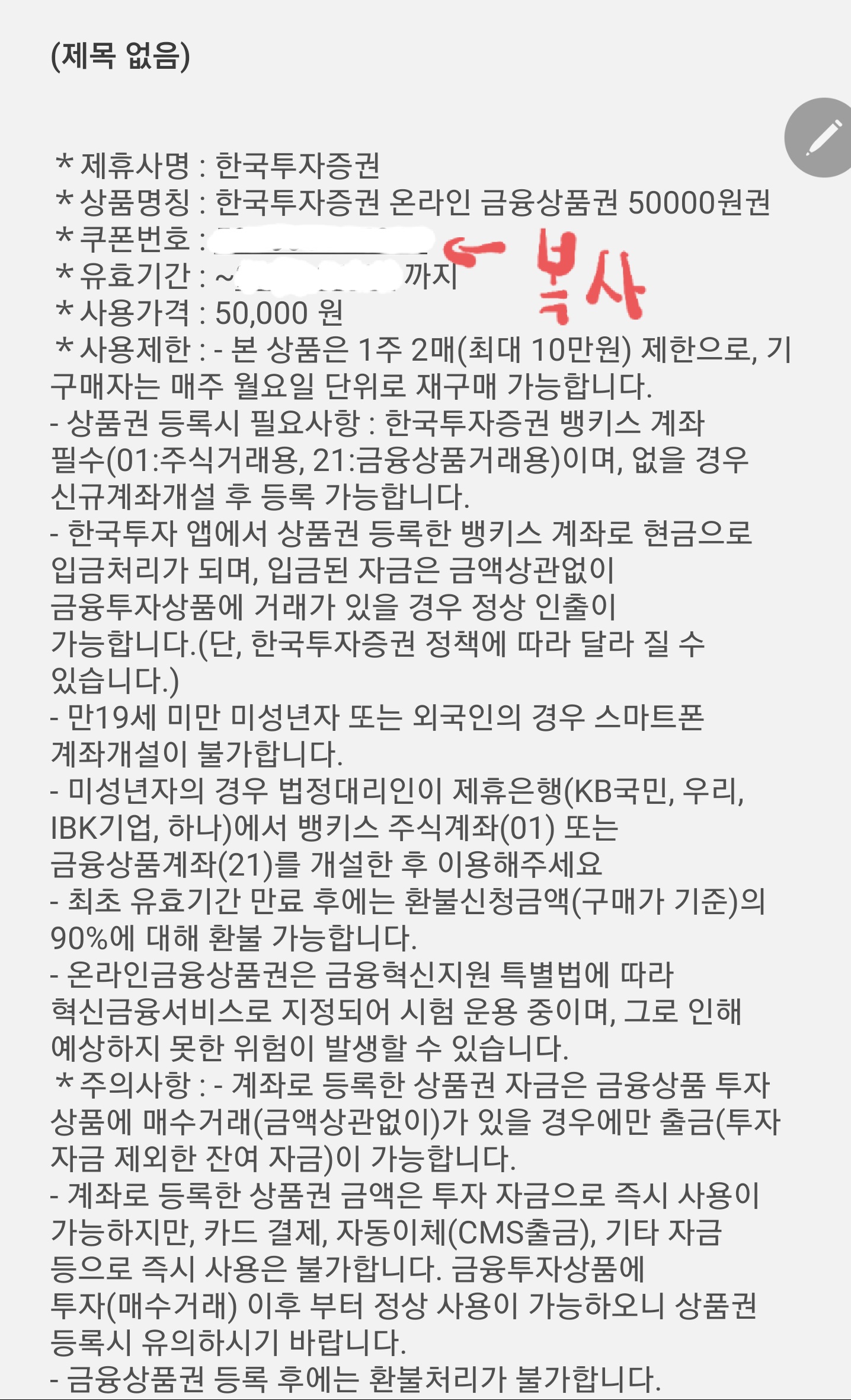 4. 구매한 상품의 쿠폰번호를 복사