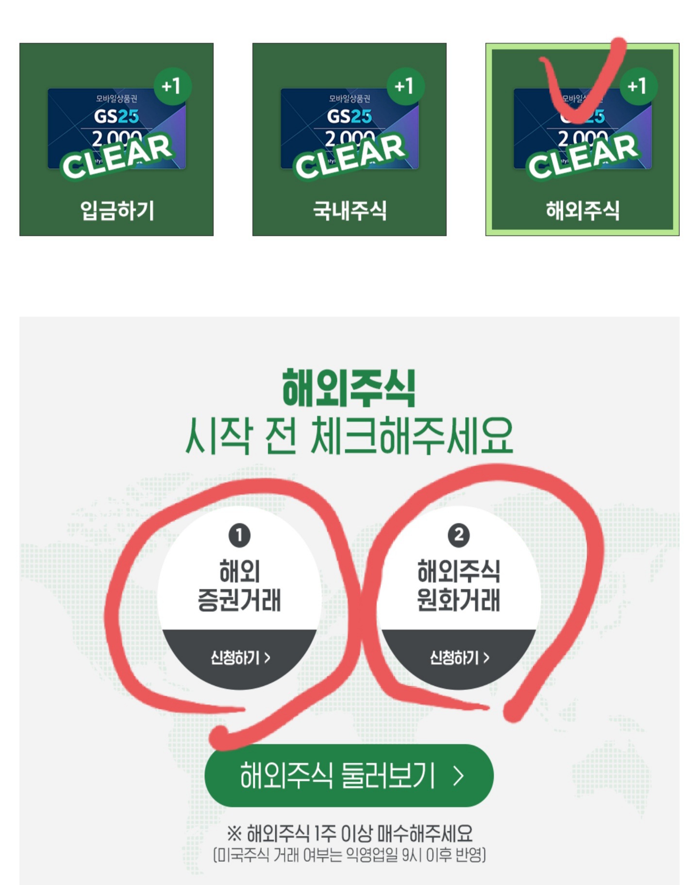 3. 해외주식 1주 이상을 구매하면 GS25 상품권 2천 원 획득