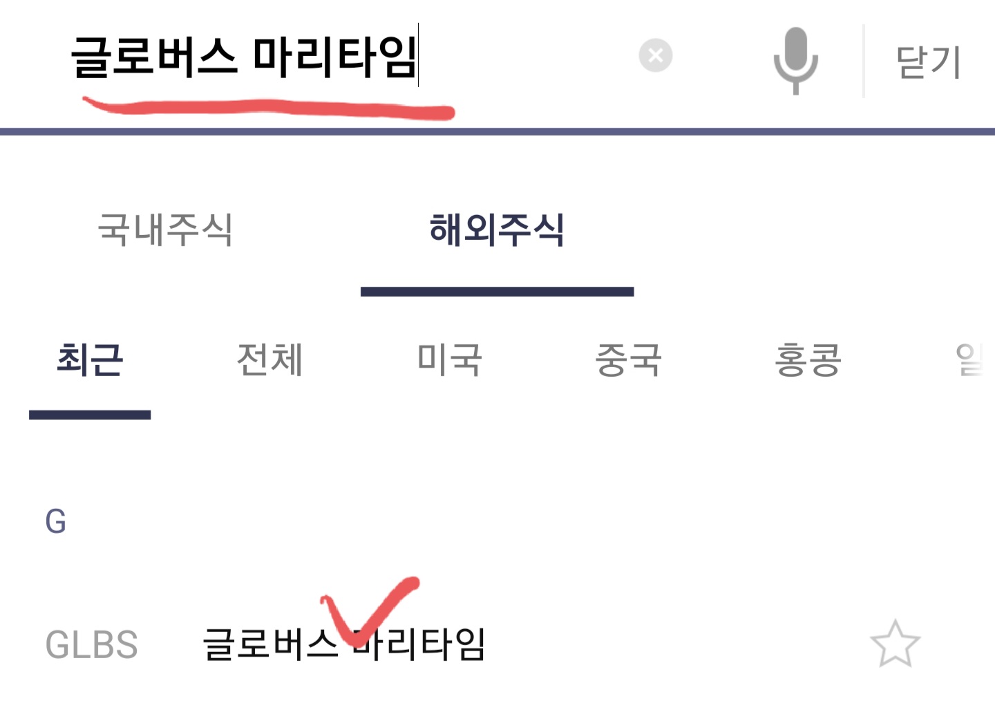 3. 돋보기 모양을 클릭하여 글로버스 마리타임 작성 후 검색