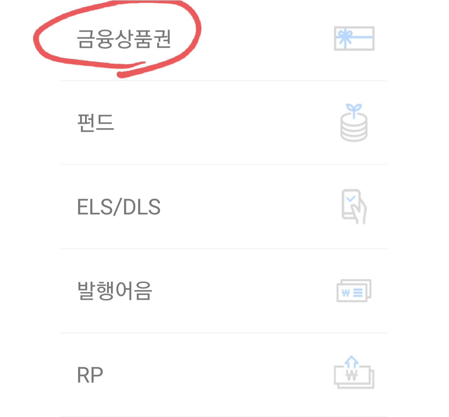1. 로그인을 하신 후 첫 화면서 '금융상품'을 선택
