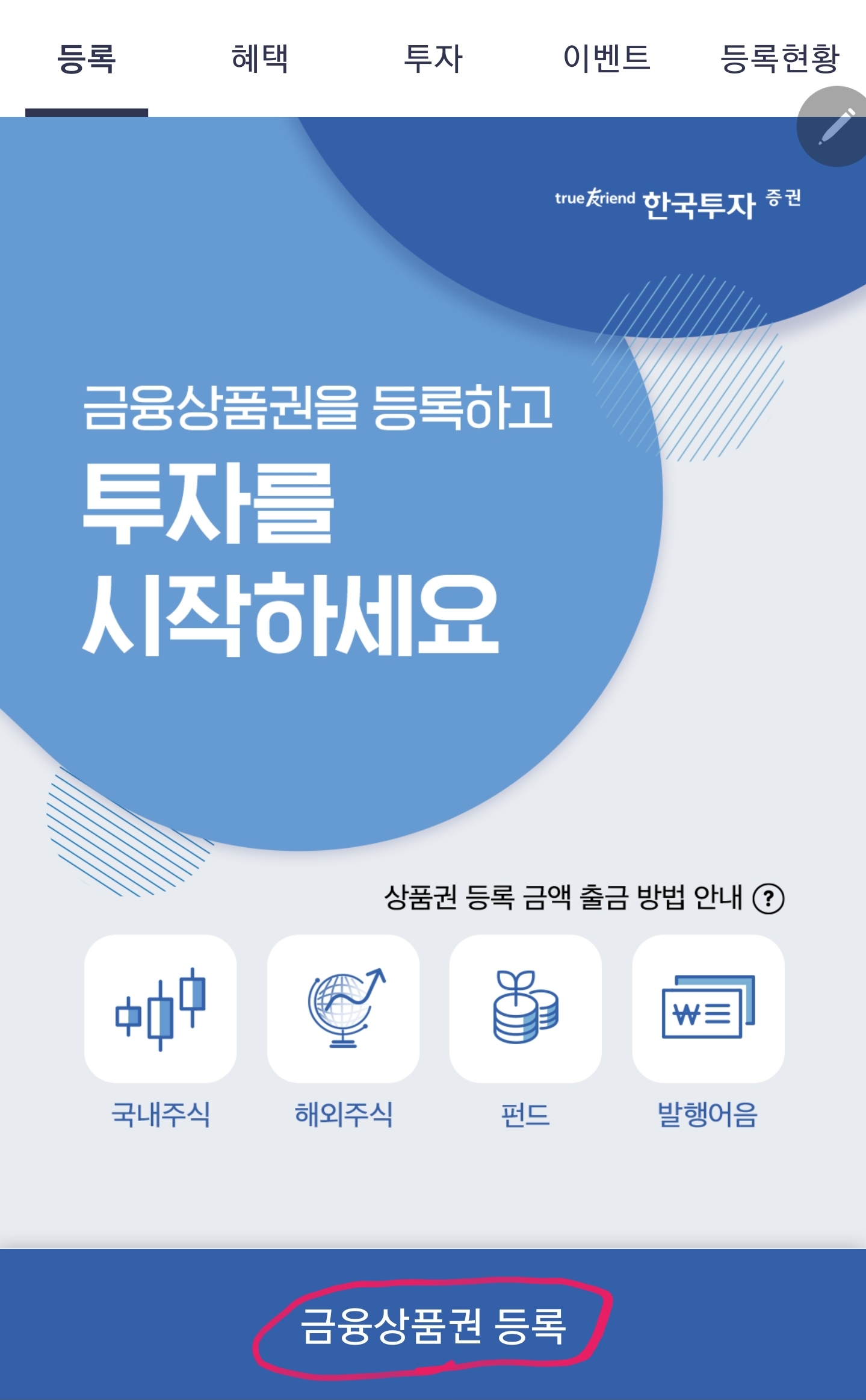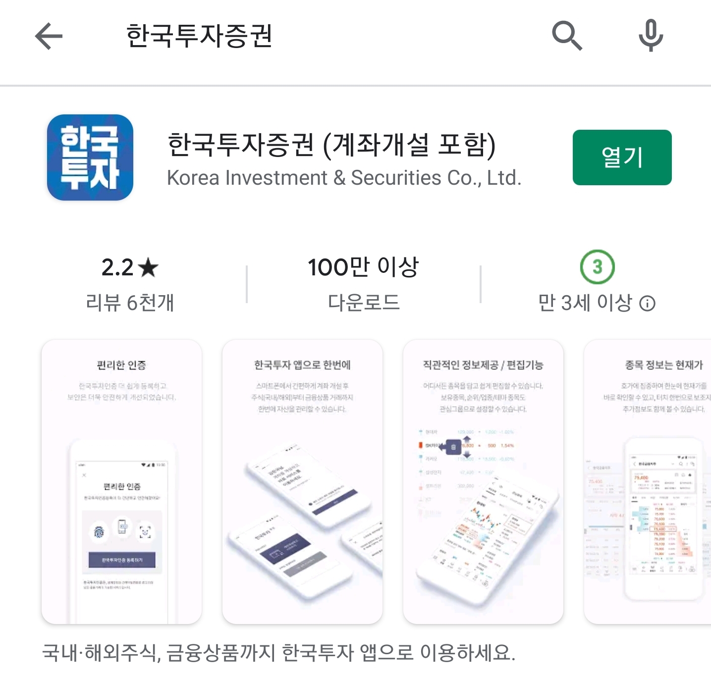 "한국투자증권 앱 설치 및 가입 필수"