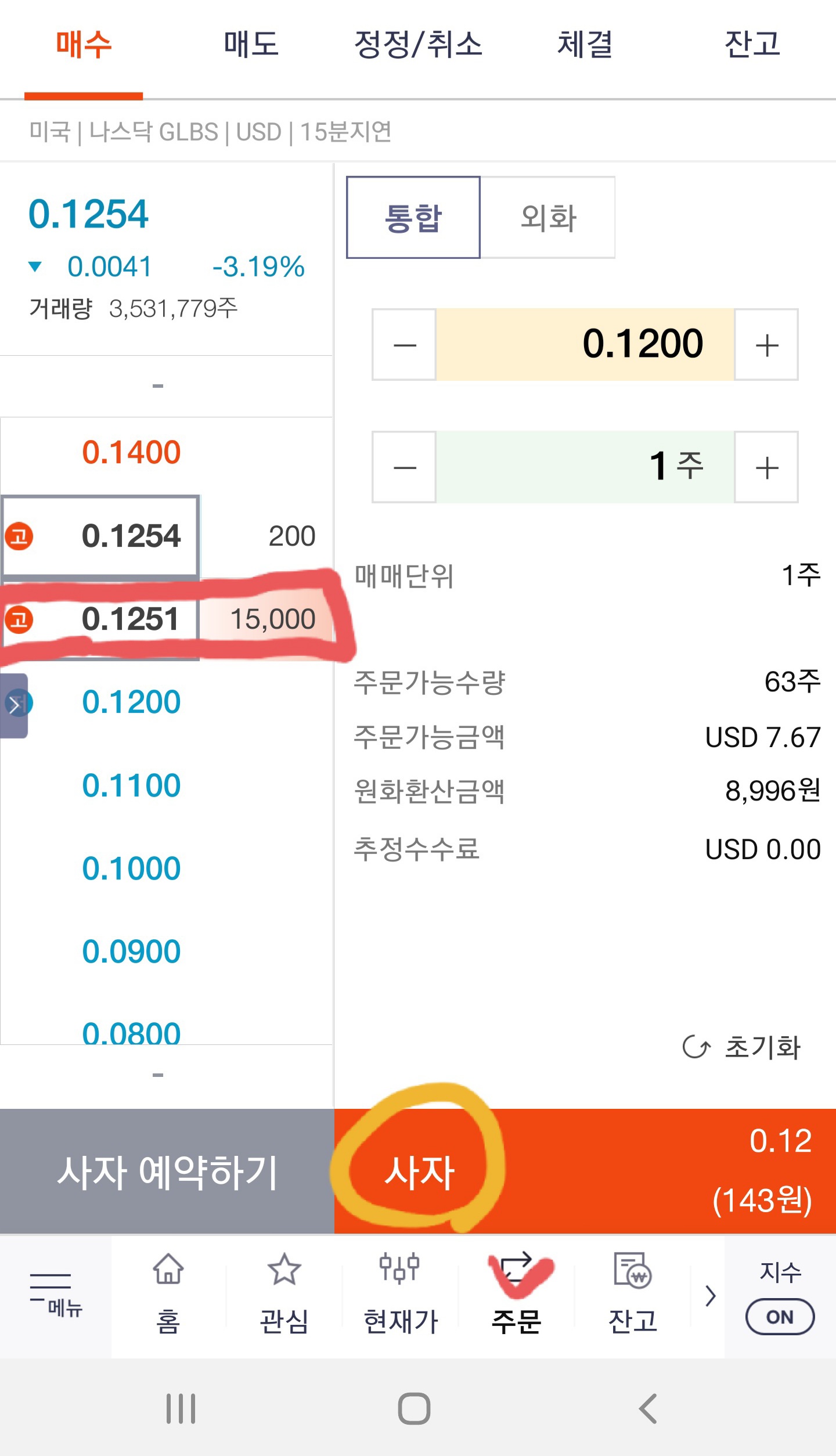 2. 해외주식 : 글로비스 마리타임 0.12.44달러입니다. 한국 금액으로 149원이네요.