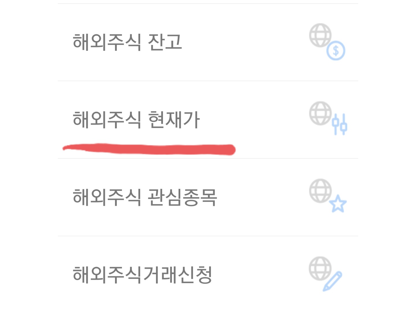 1. 메인화면에서 해외주식(주식) 선택