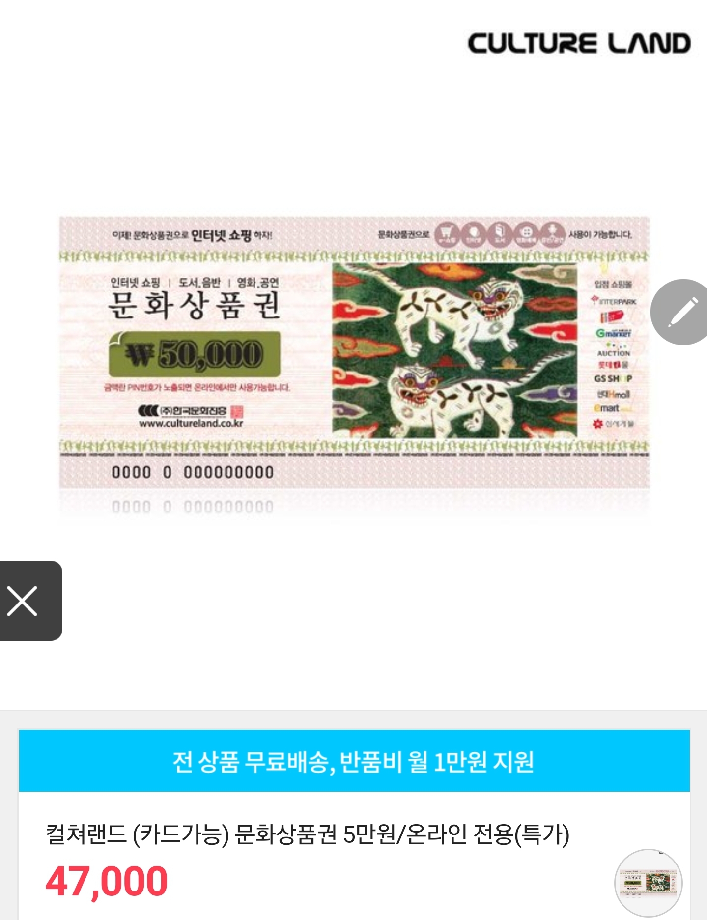 상품권을 급하게 구입하느라 장당 47000원에 구입하여 예상 금액보단 조금 비싼 가격에 구매했습니다.