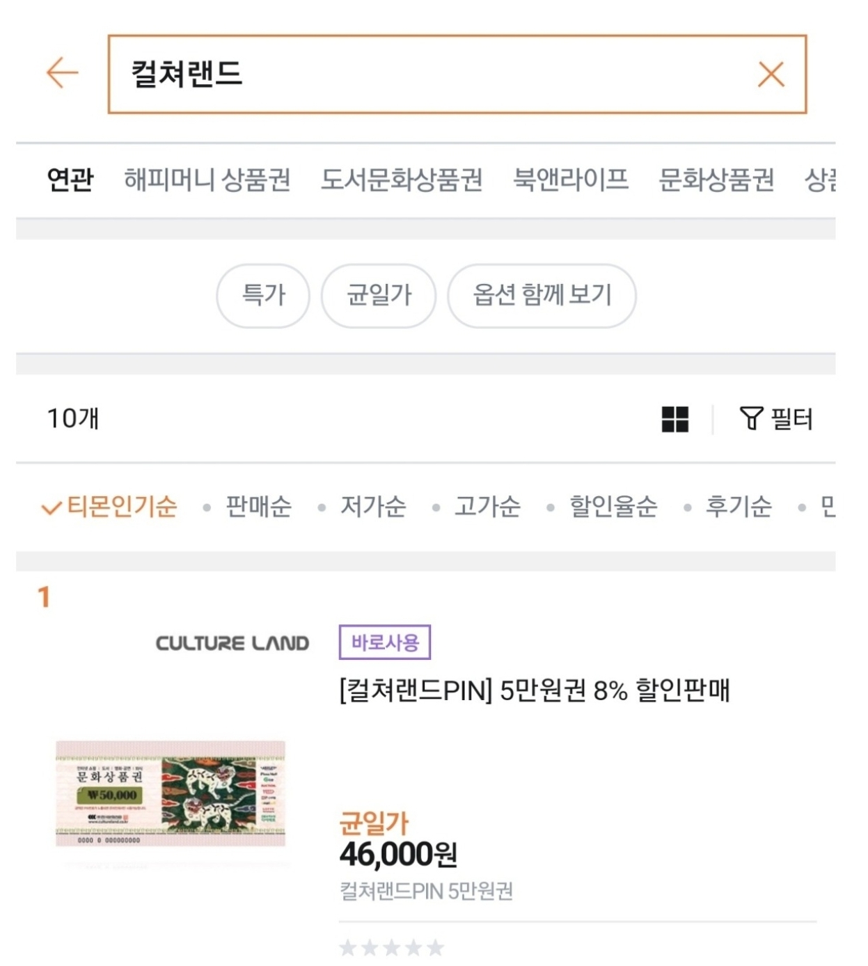 | 컬처랜드 5만원 X 4 | 184000 | 200000 | 상품권 구입가격 46000원 기준 |