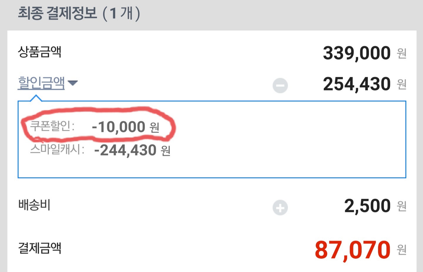 스마일 캐시는 위 쇼핑몰에서 사용 할 때 쿠폰적용을 모두 한 후에도 사용이 가능하여 가성비가 좋습니다.