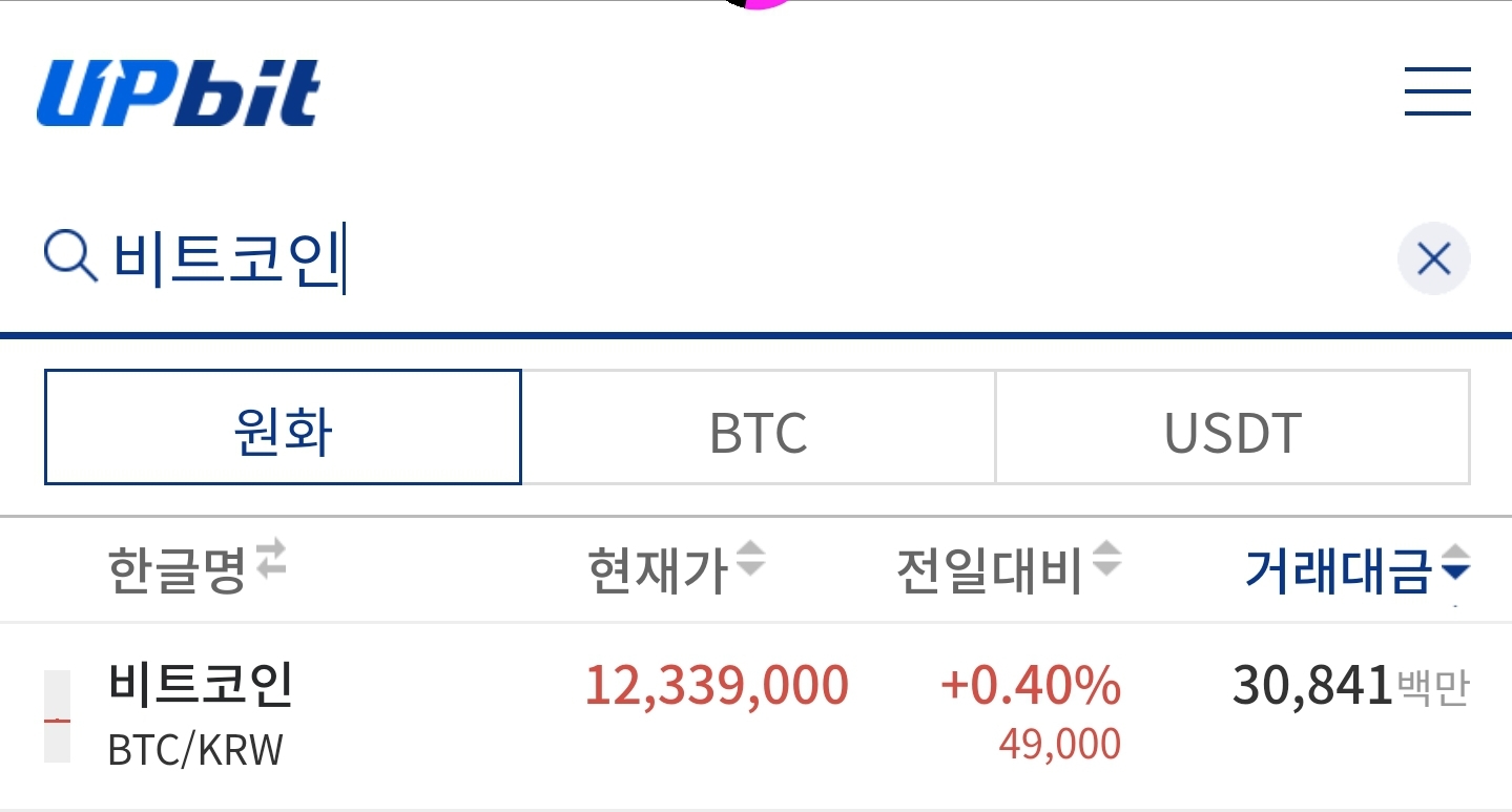 1. 초기화면에서 비트코인 검색하여 비트코인 선택하기