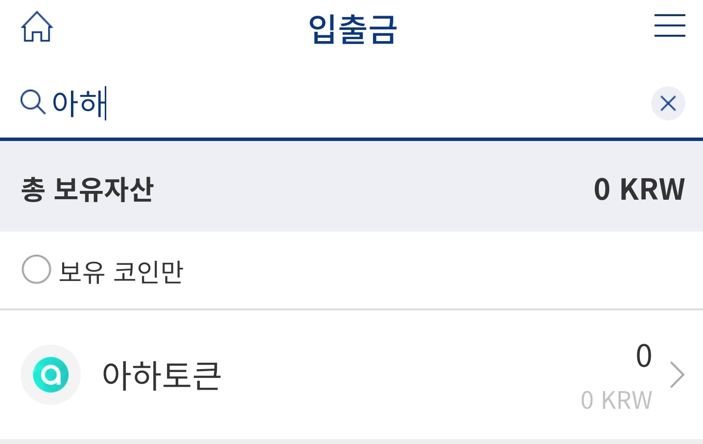 8. 나의 자산 아하토큰(AHT) 선택