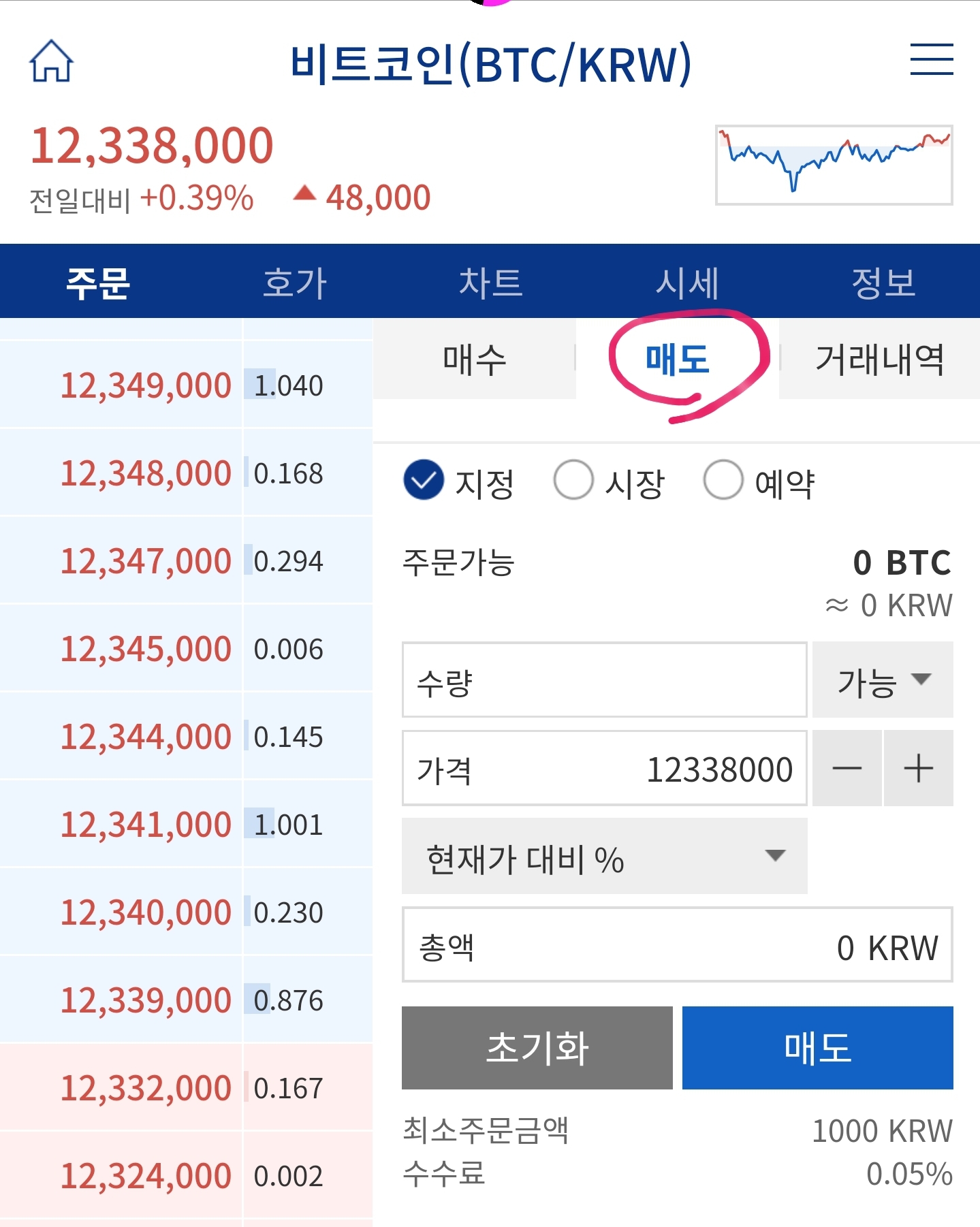 2. 매도 클릭