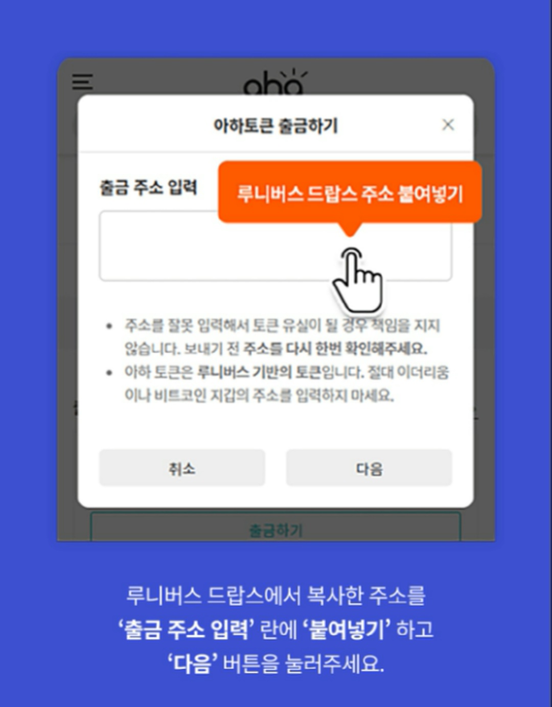 3. 2번째 탭의 아하 토큰 외부 출금 방법 안내 선택