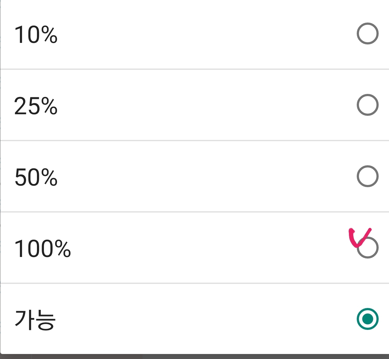 4. 수량 옆 가능을 선택 후 100% 입력