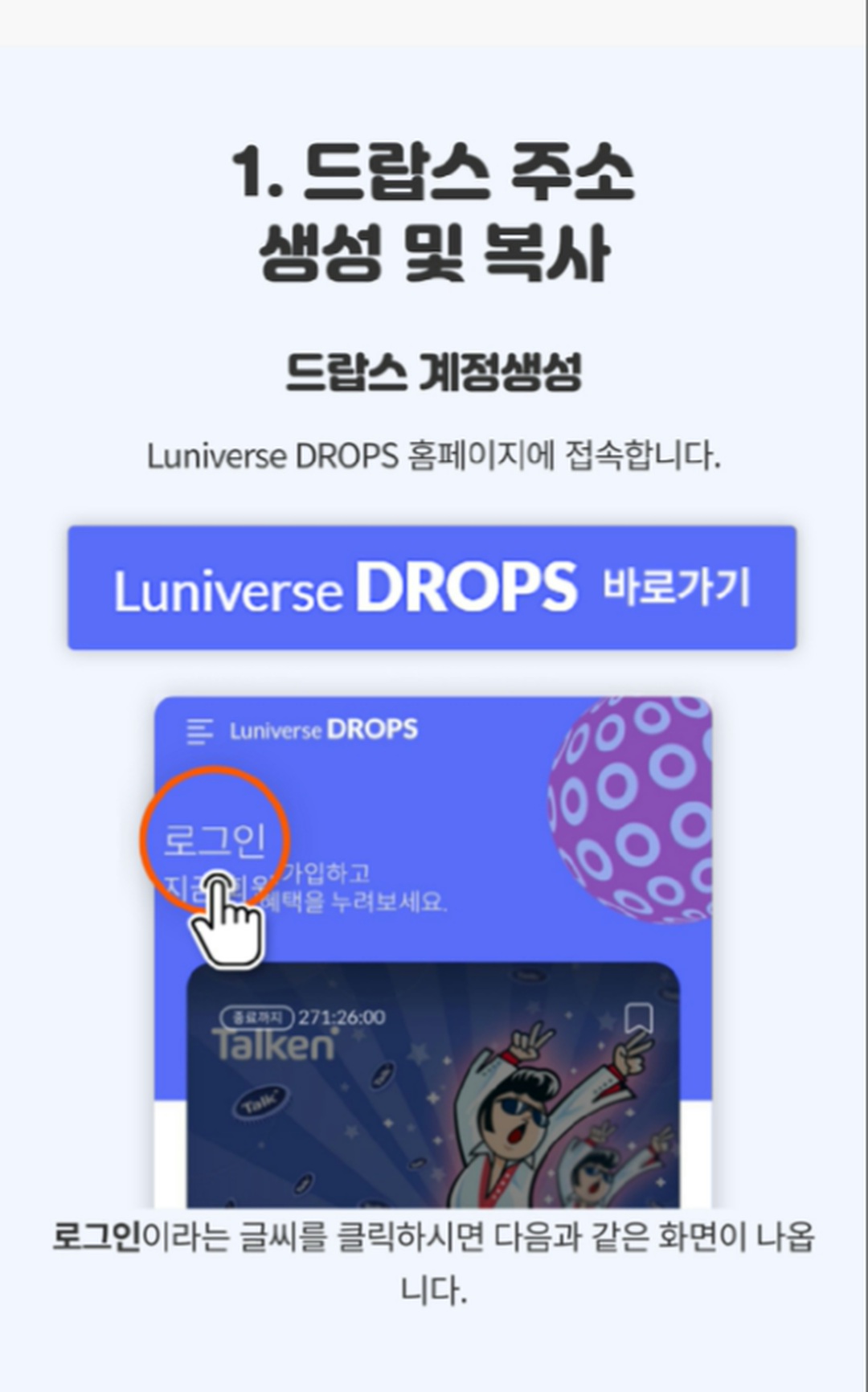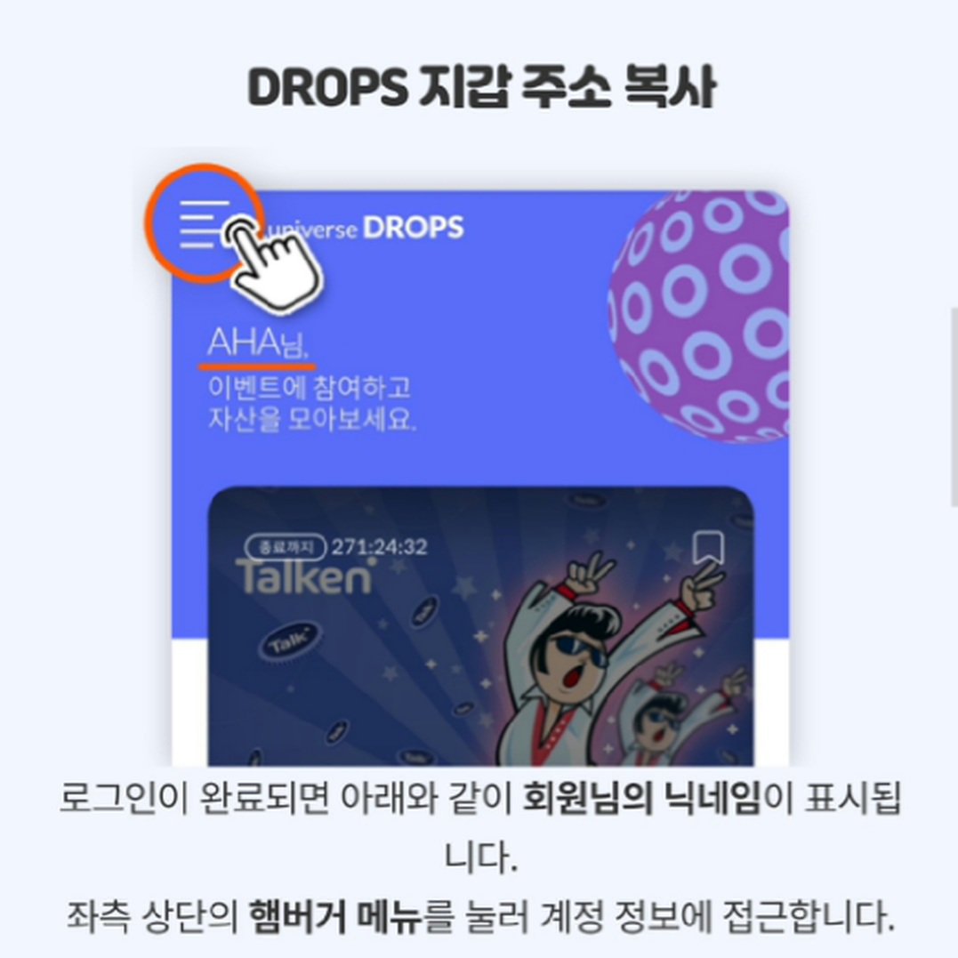 4. 하단 링크를 선택하여, 루니버스 드랍스에 접속