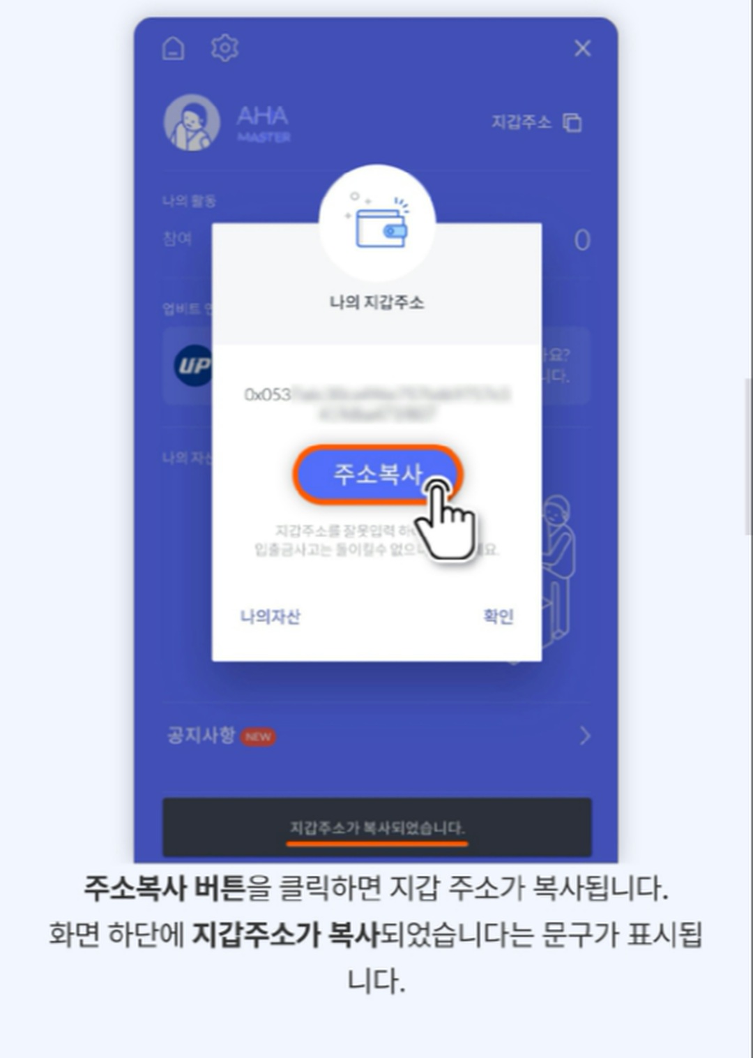 8. 지갑 주소 버튼을 선택