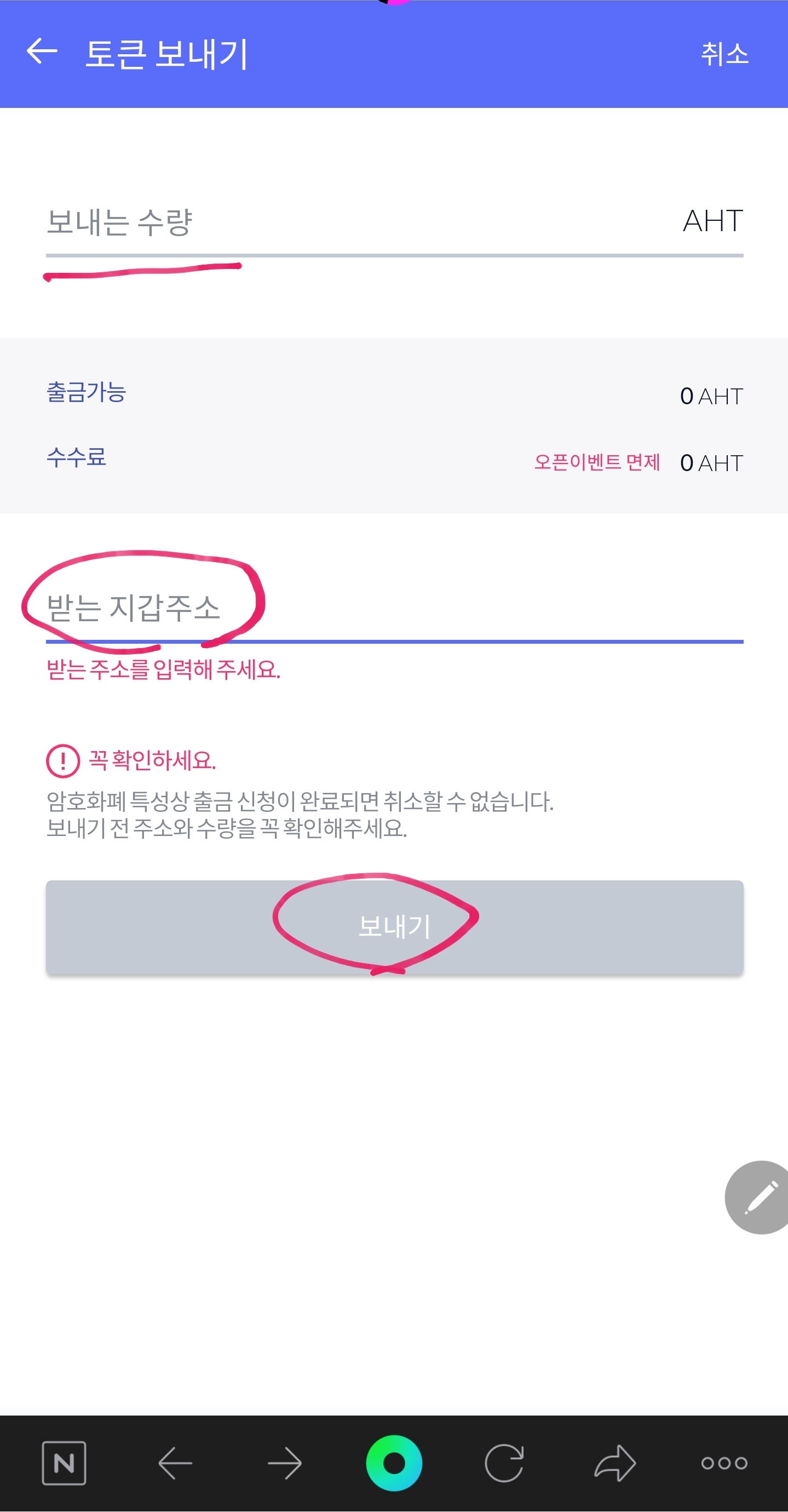 "아하토큰 출금하기"