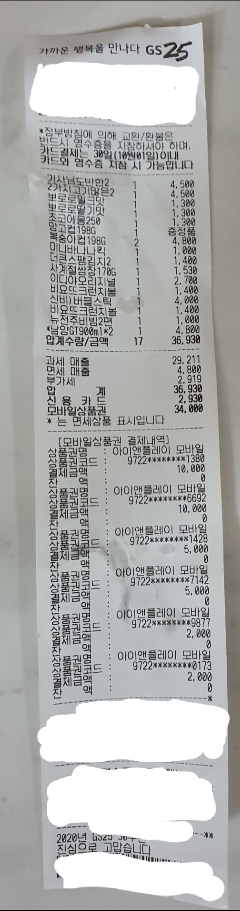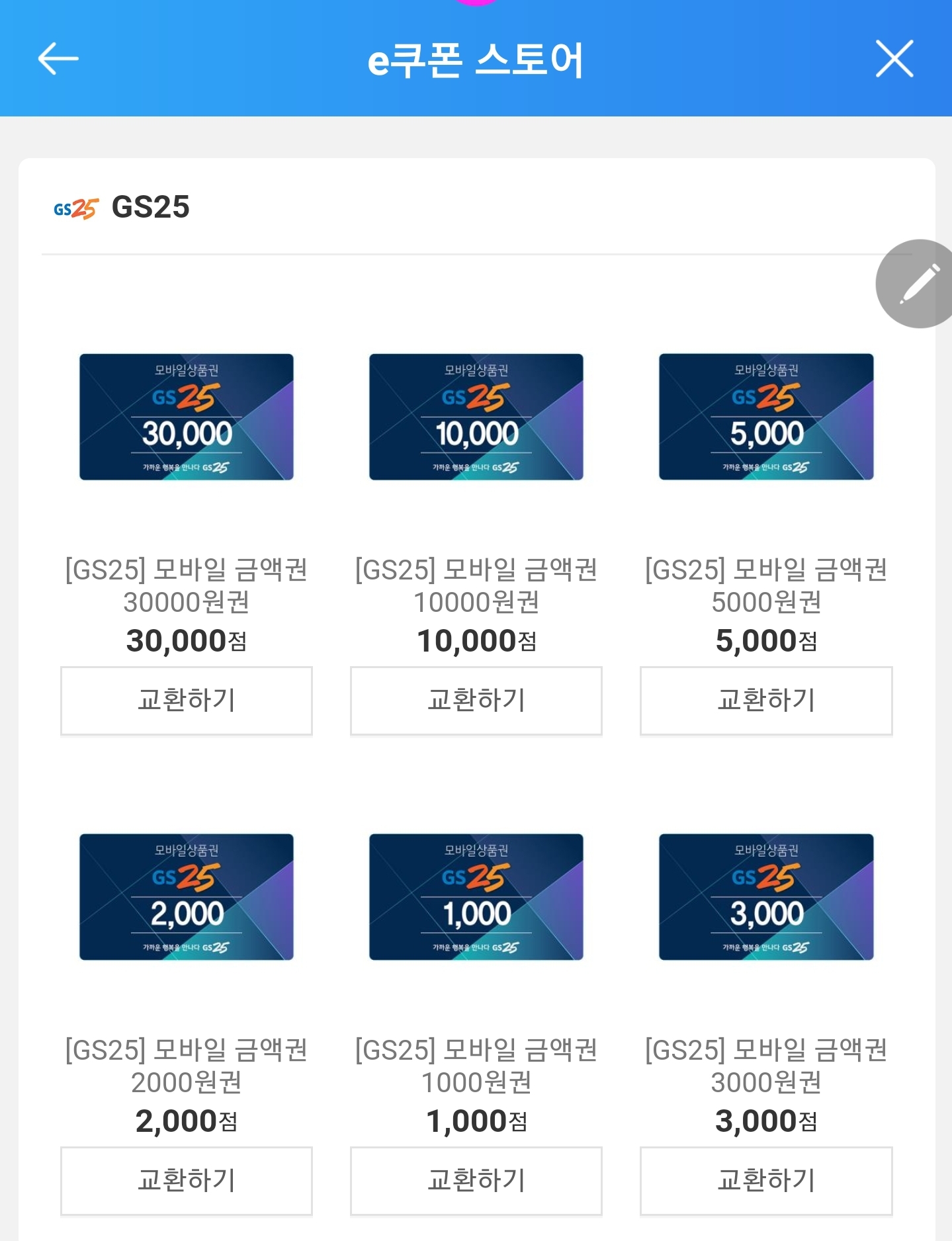 그 모은 포인트를 전부 GS25 상품권으로 변경해서 GS25에서 많은 것들을 바꿔왔습니다.