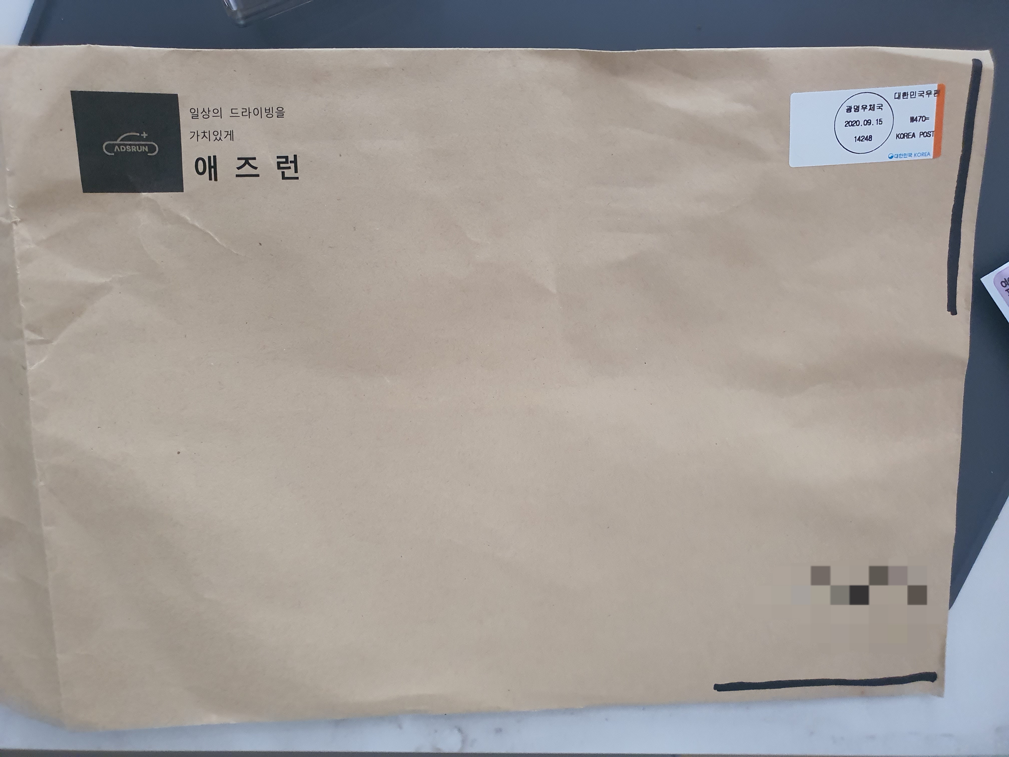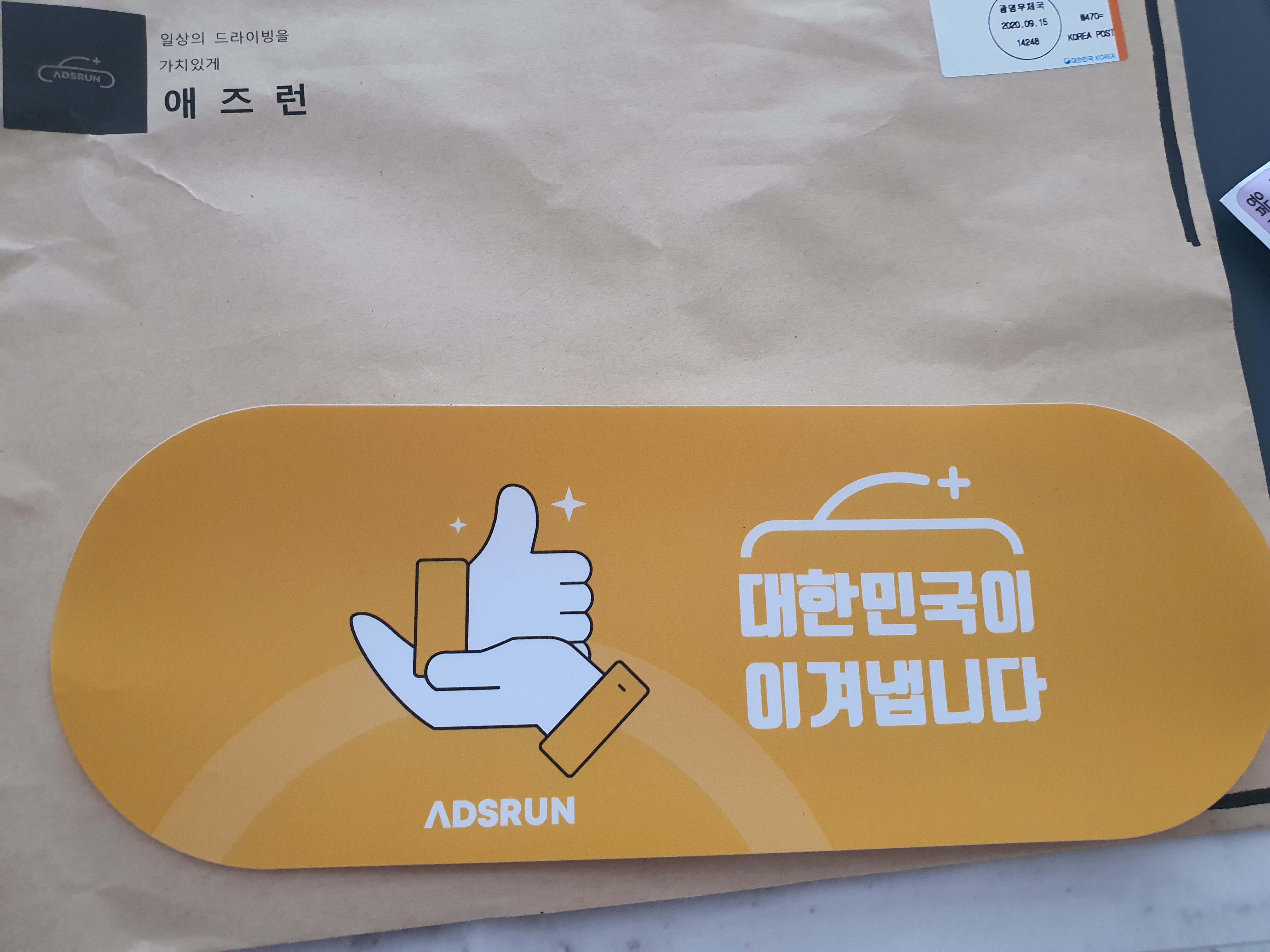 스티커는 무료배송이고, 서류봉투에 담겨 편지함으로 전달됩니다.
