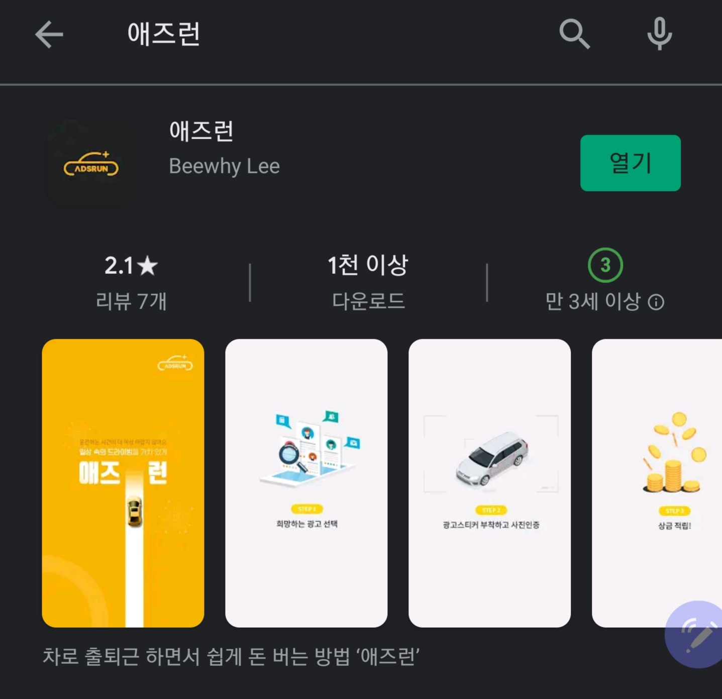 앱스토어나, 플레이스토어에서 애즈런을 검색하시어 다운로드하시면 됩니다.