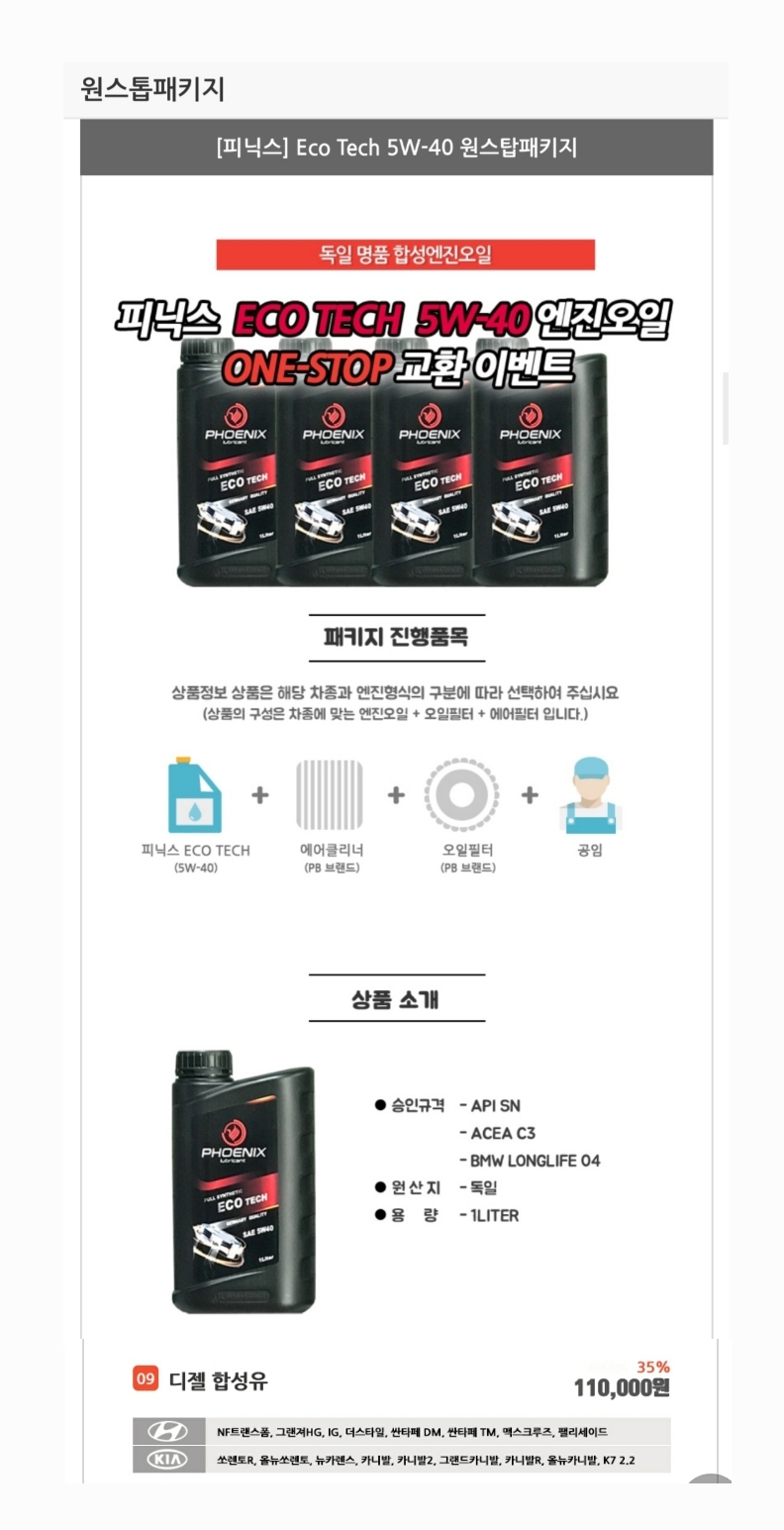 해당 오일은 현재 공임나라에서 이벤트 중인 오일로 공임비 포함하여 110,000원에 교체가 가능했습니다.