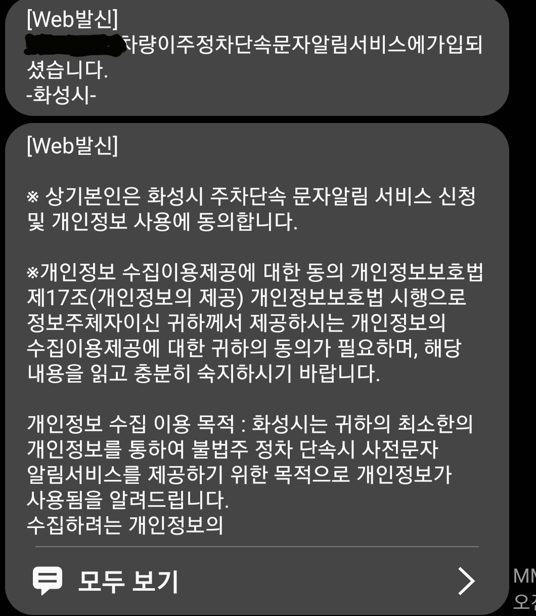 7. 문자로 주정차 알람 신청 문자를 받게 됩니다.