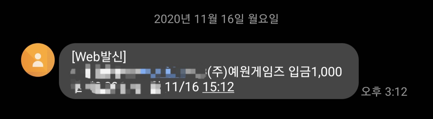 금일 오후 3시 12분경에 입금된 현황입니다.