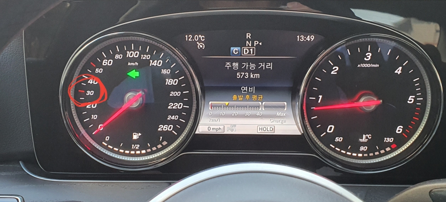 속도 계기판에도 30km/h에는 빨간색으로 표기되어있습니다.