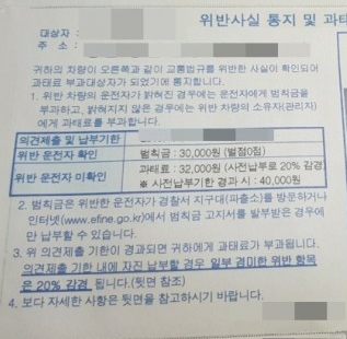 예시로 범칙금 3만 원에 벌점 없음 / 과태료 4만 원인 통지서가 날아오면 이런 생각을 하실 수 있습니다.