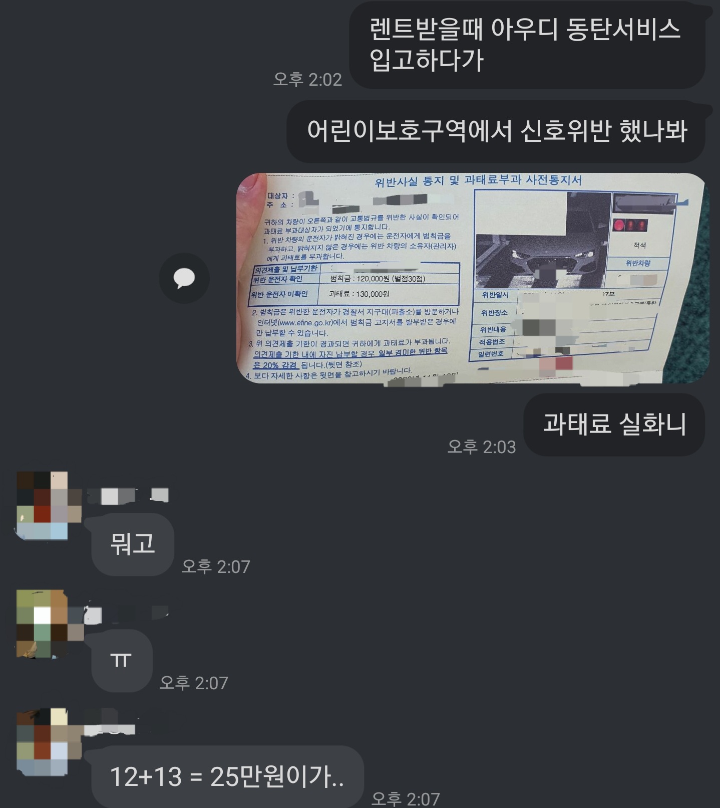친구들에게 화가 난다고 보여주니 한 친구가 범칙금 12만 원 + 과태료 13만 원 해서 총 25만 원 내야 해?라고 얘기하더라고요.