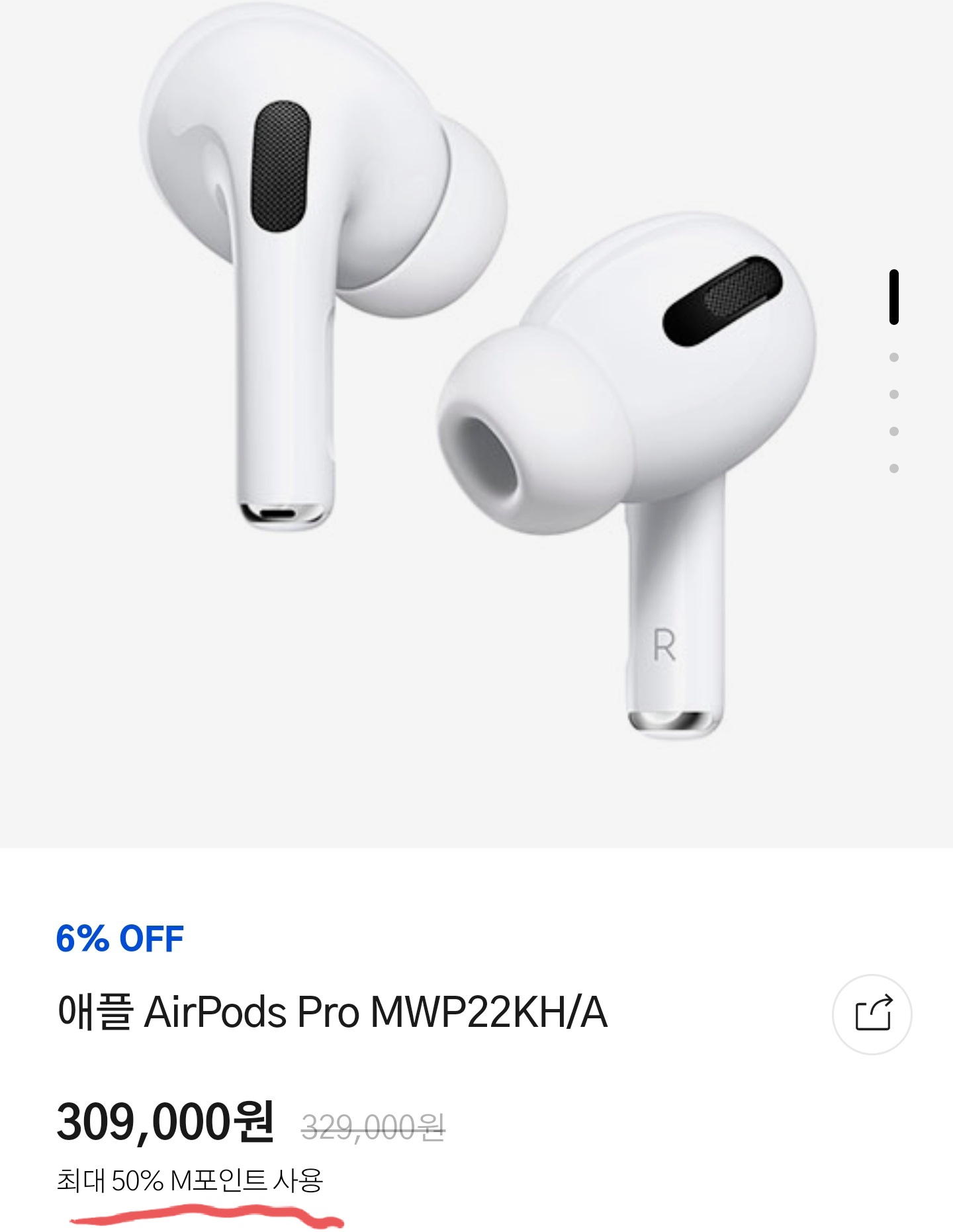 에어팟 프로를 309,000원에 구매할 수 있네요.