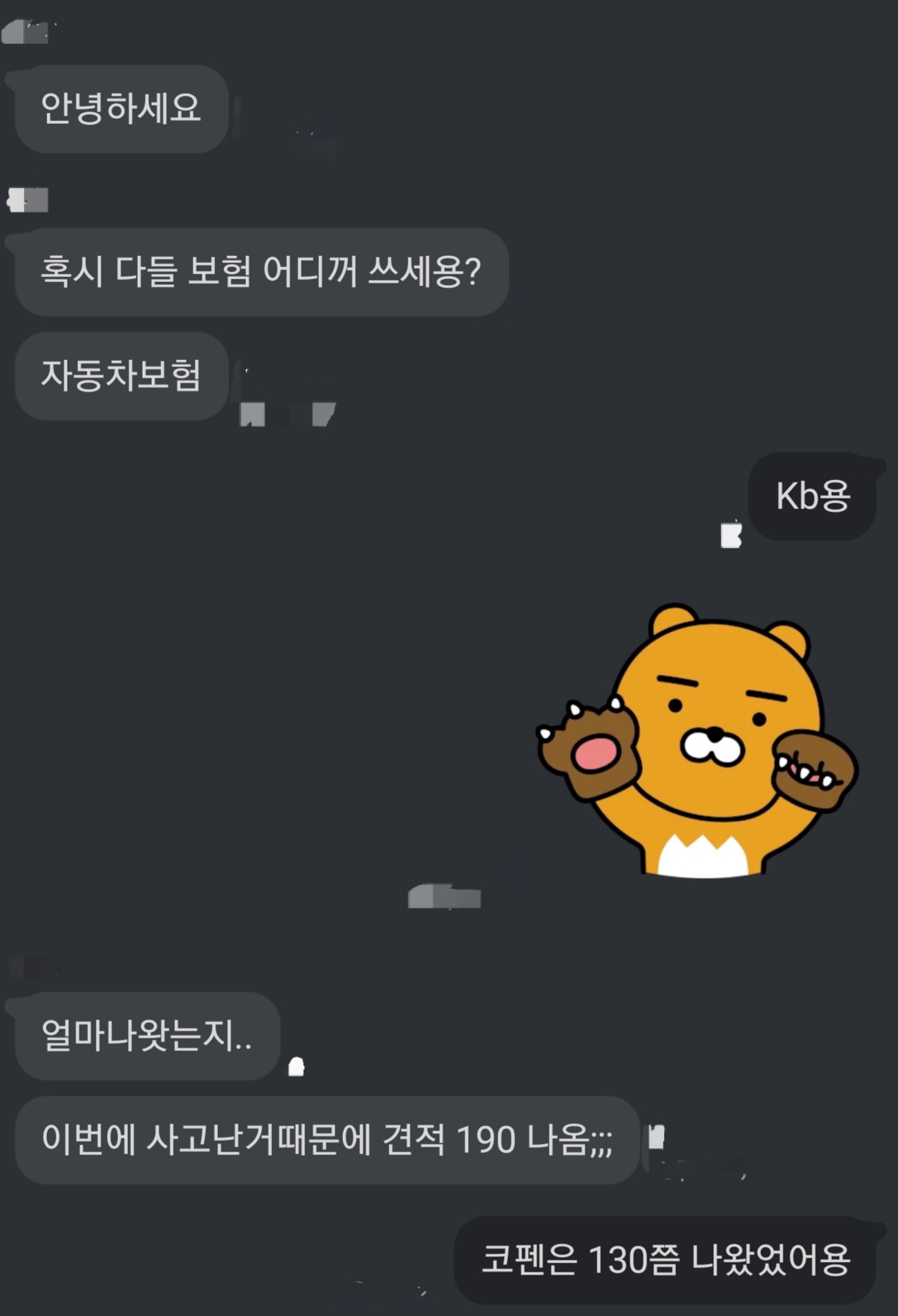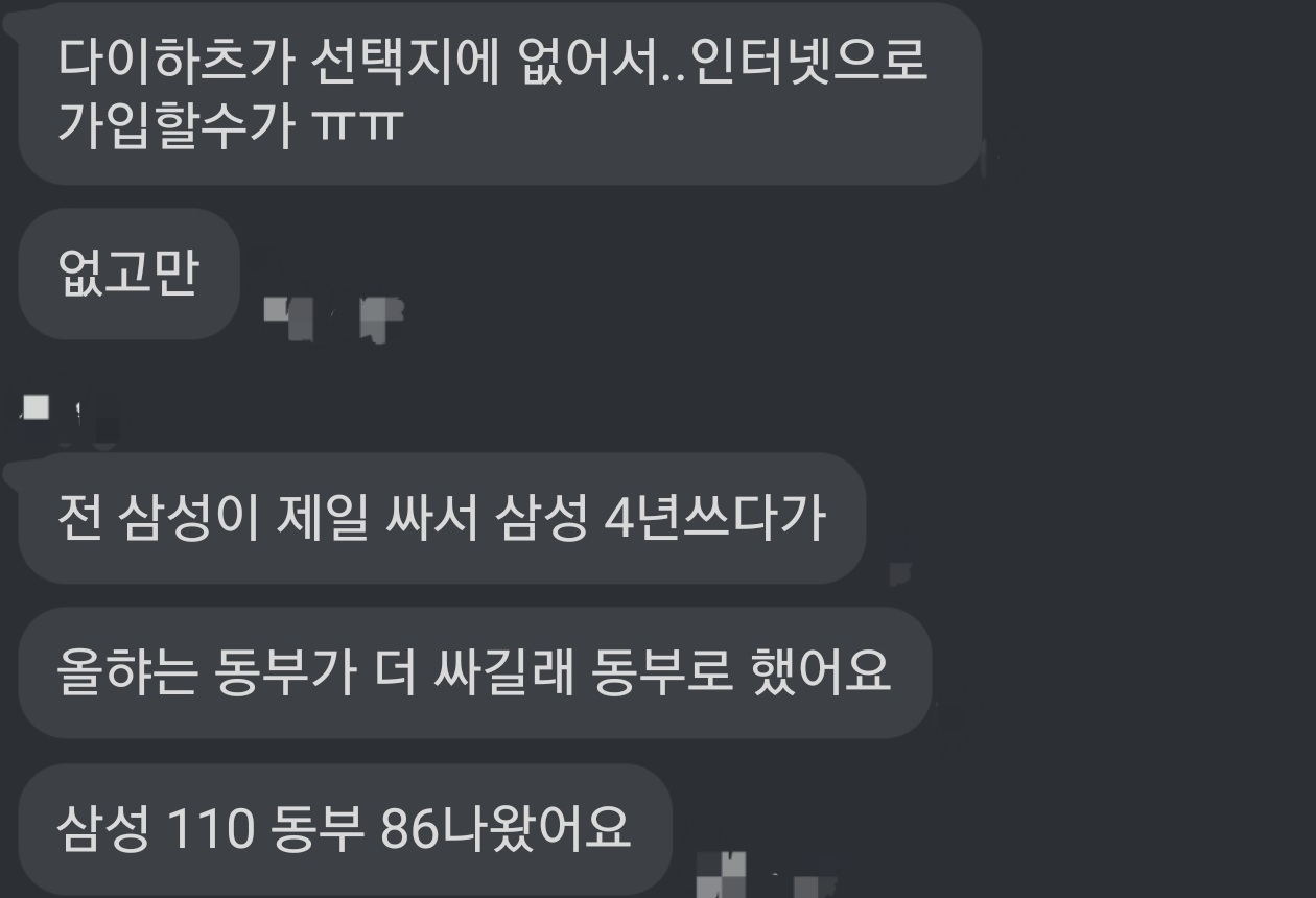 한분은 삼성화재에선 110만 원인데 동부화재에서 86만 원이라 동부화재로 픽했다고 합니다.