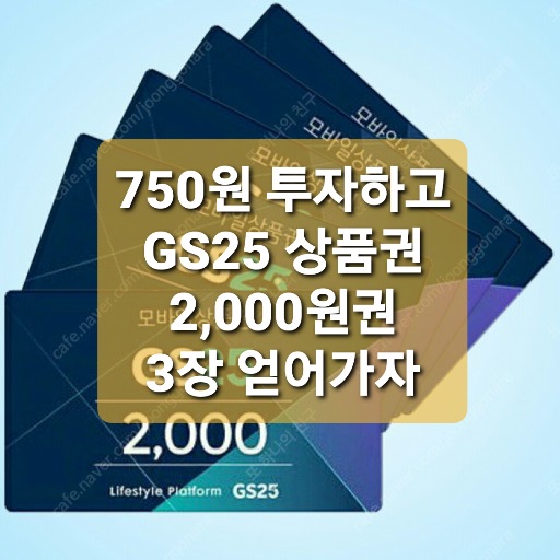 1,000원 미만의 금액을 투자하고, GS25 시 상품권 2,000권 3장을 받아가니, 이득 아니고 개이득인 셈입니다.