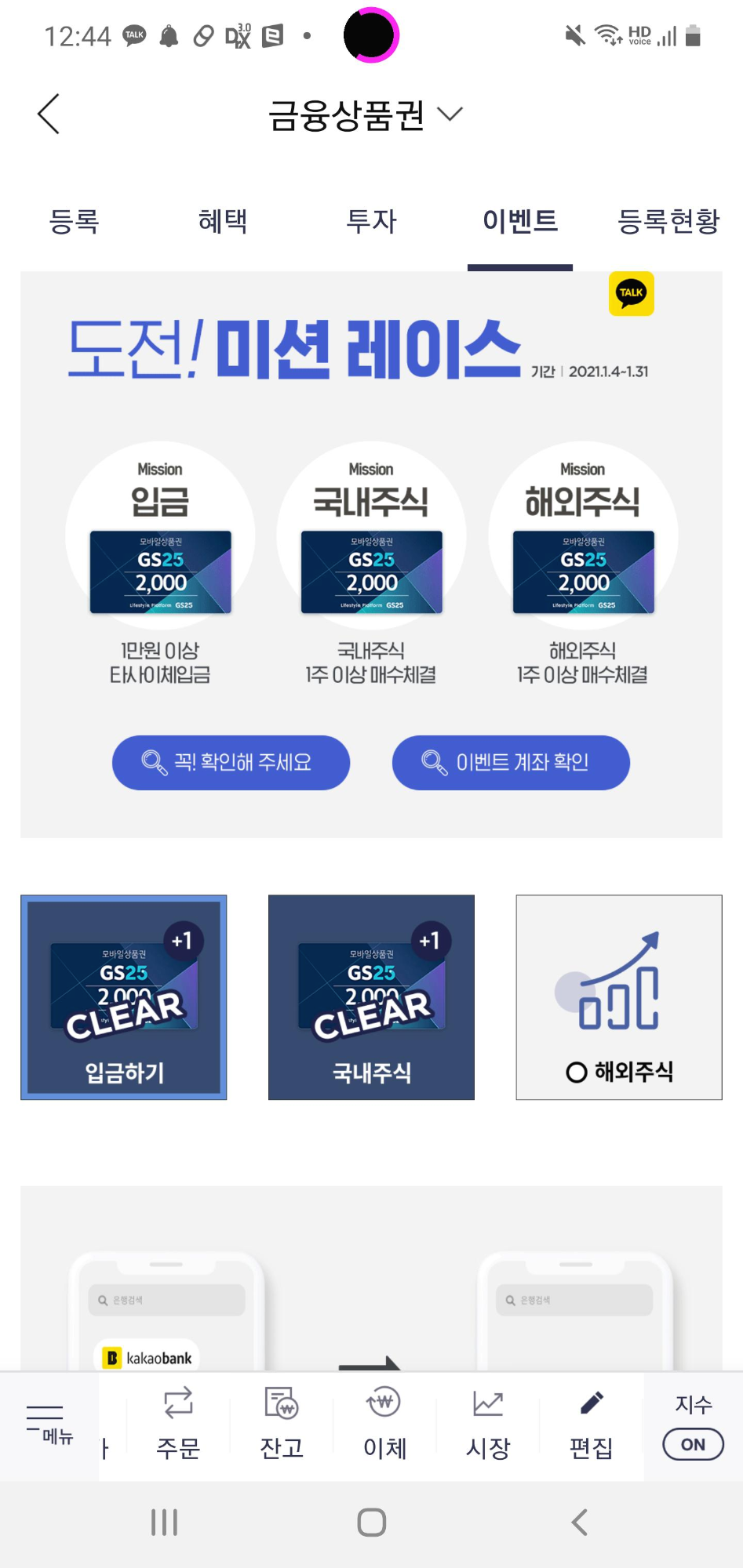 3. 이벤트에 참여하기 위해 10,000원을 한국투자증권에 입금합니다.-GS25 시 2천 원 상품권 획득