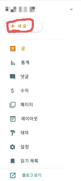 1. 좌측 상단 새 글을 눌러줍니다.