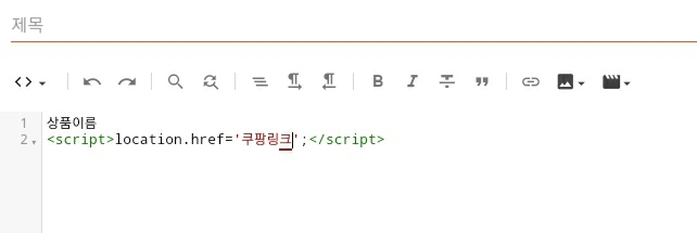 4. 다음 수식어를 작성 후 중앙 쿠팡 링크 부분에 쿠팡 파트너스에서 복사한 상품의 링크를 붙여 넣기 합니다.
