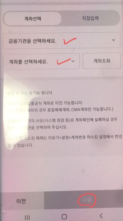 5. 계좌를 선택 후 다음을 눌러줍니다.