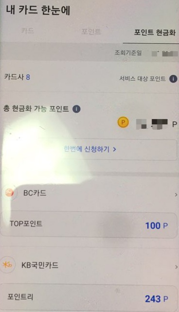 2. 제가 가진 카드사의 포인트를 모두 확인할 수 있습니다.
