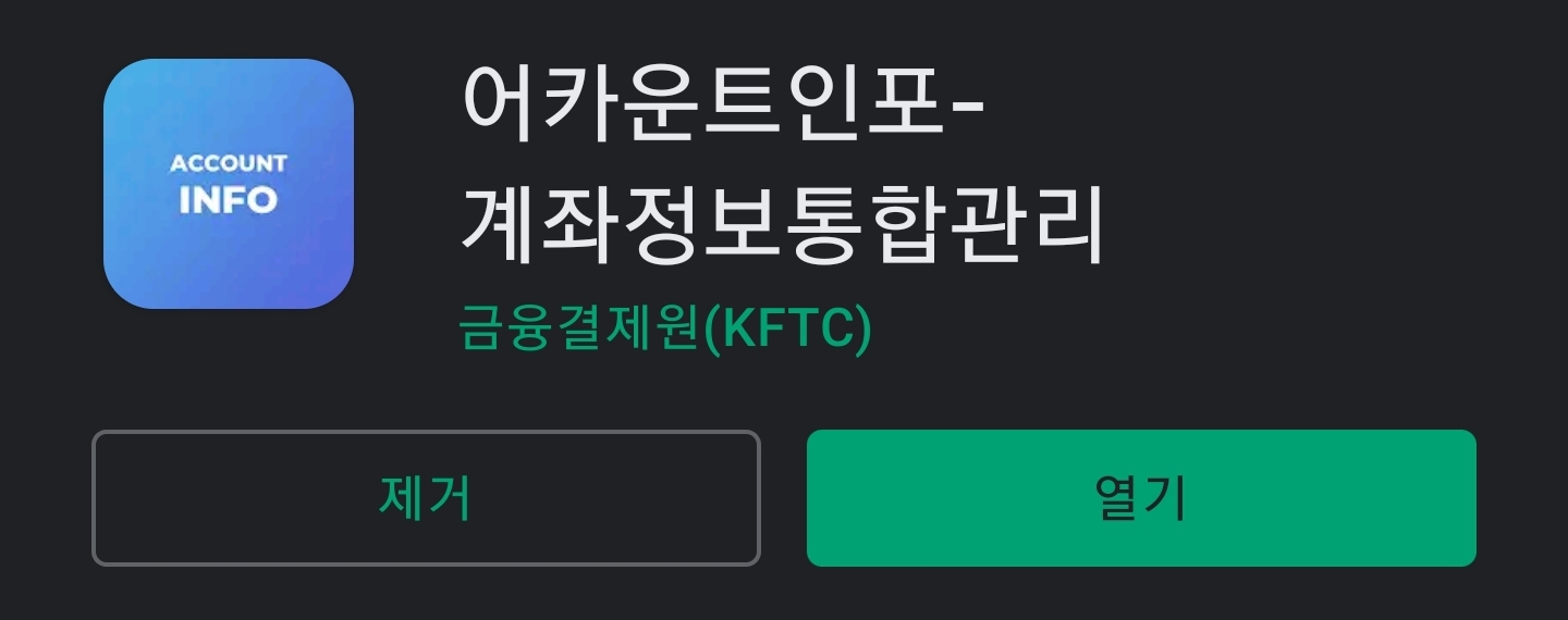 다운을 받고 나면 '계좌통합관리'라는 앱으로 설치가 되는데 아이콘에는 어카운트인포라고 작성되어 있습니다.