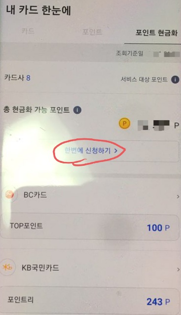 3-1. 포인트를 '한 번에 신청하기'를 통해 한꺼번에 포인트를 현금화를 진행할 수도 있으나, 포인트 별로 각각 신청도 가능합니다.