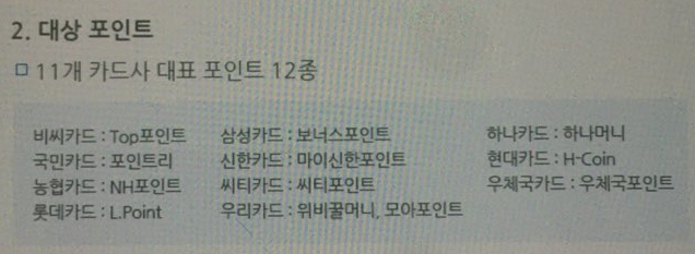 -> 2021년 1월 5일부터 시행한 카드포인트 현금화 서비스 기능이 추가되었습니다.
