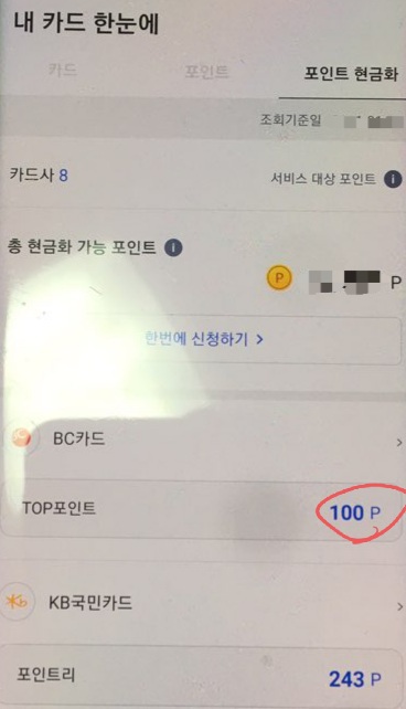 3-2. 포인트 하나만 현금화를 해보고자 BC카드 TOP포인트를 현금화 진행해보겠습니다. BC TOP포인트 클릭