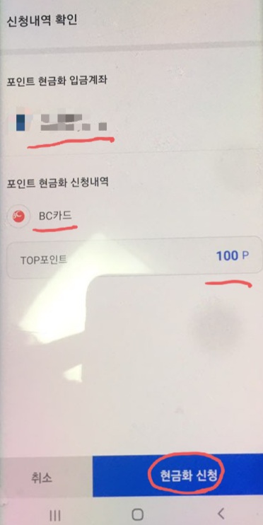 6. 입금계좌 및 현금화 신청 포인트를 확인 후 '현금화 신청'을 눌러주고 인증을 받으면 끝이 납니다.