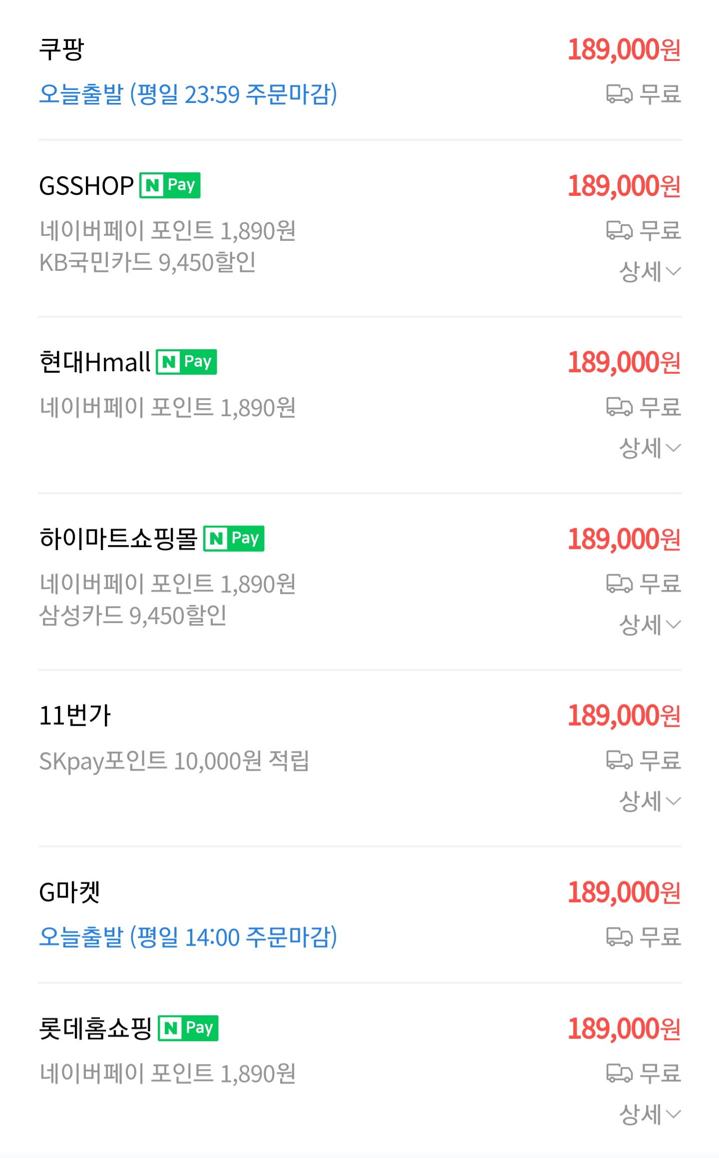 네이버 최저가 기준으로 189,000에 판매중에 있었습니다.