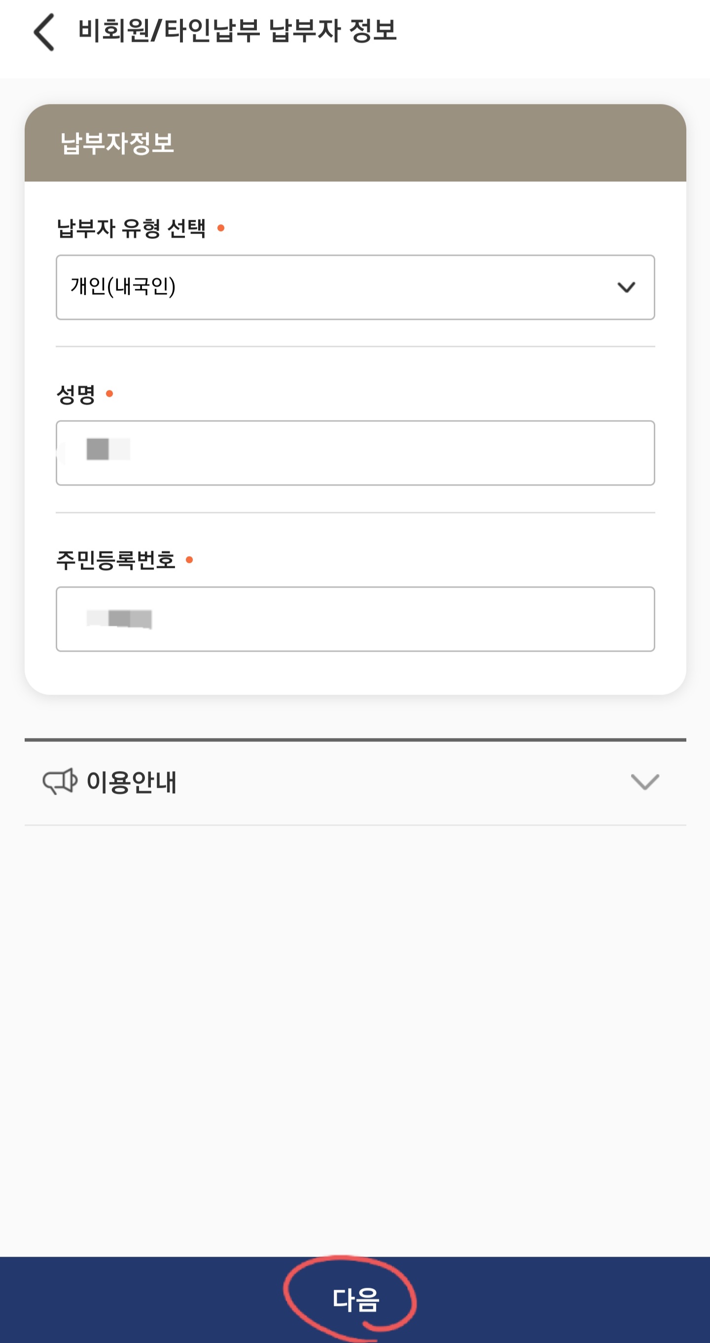 4. 납부자 정보를 입력합니다.