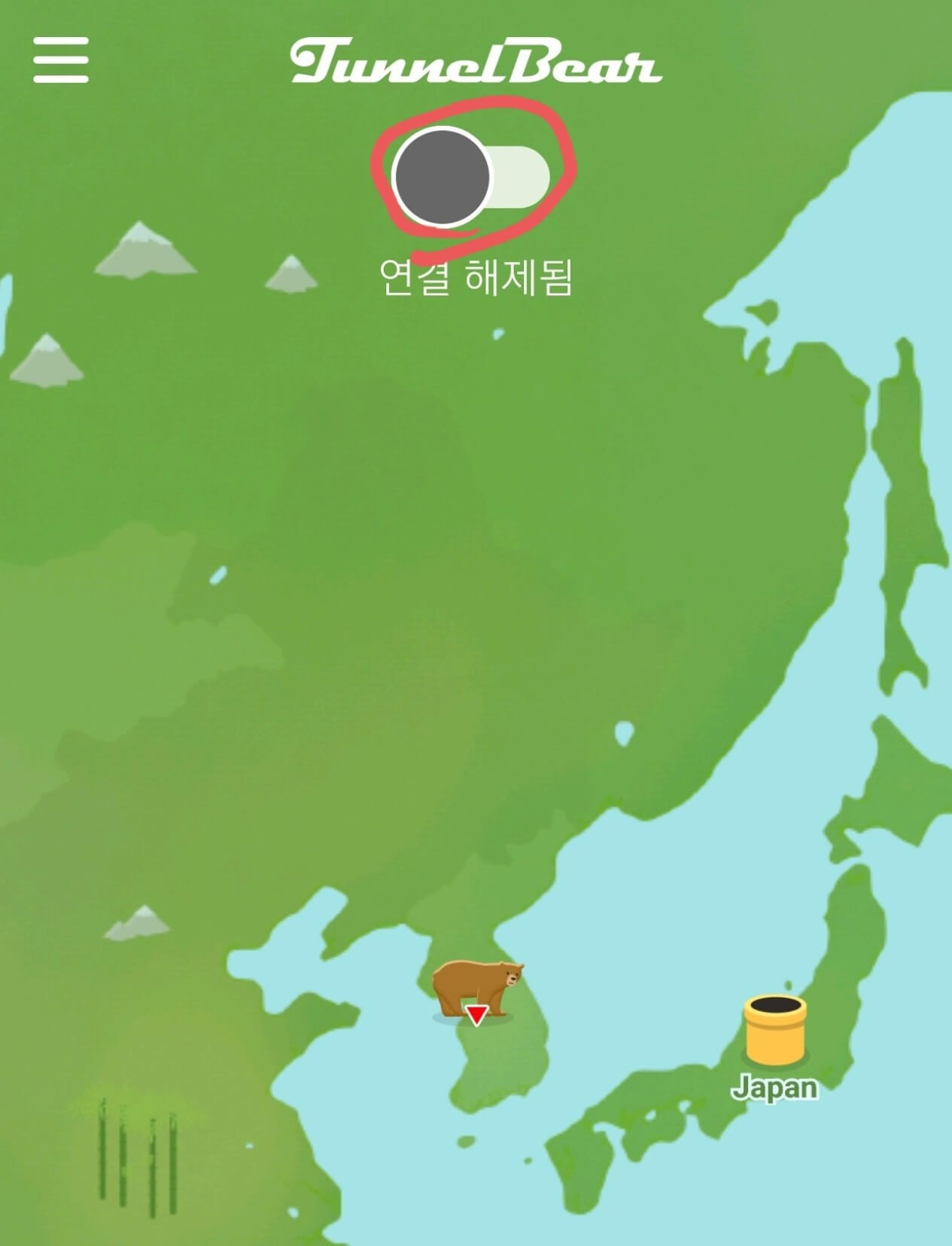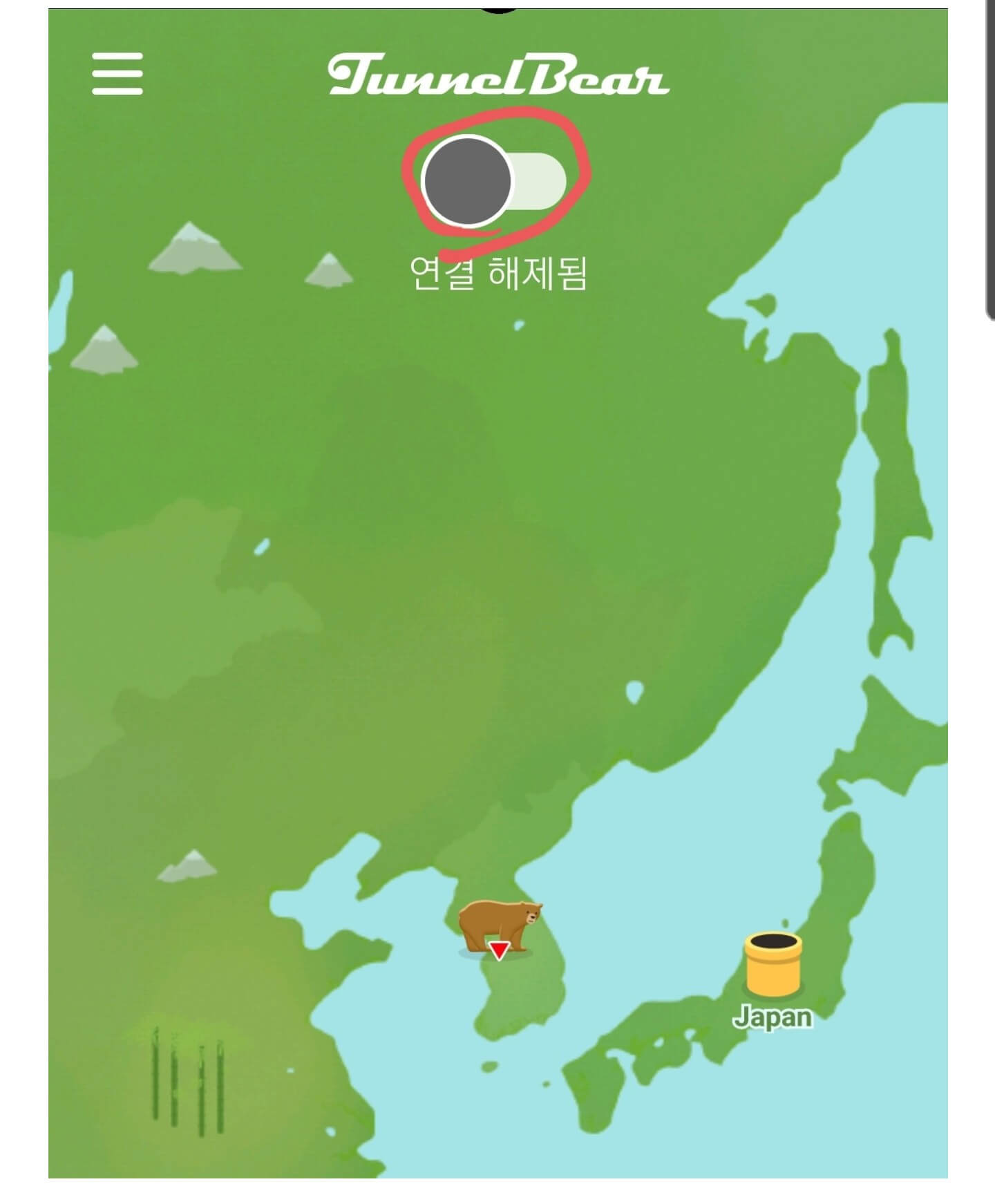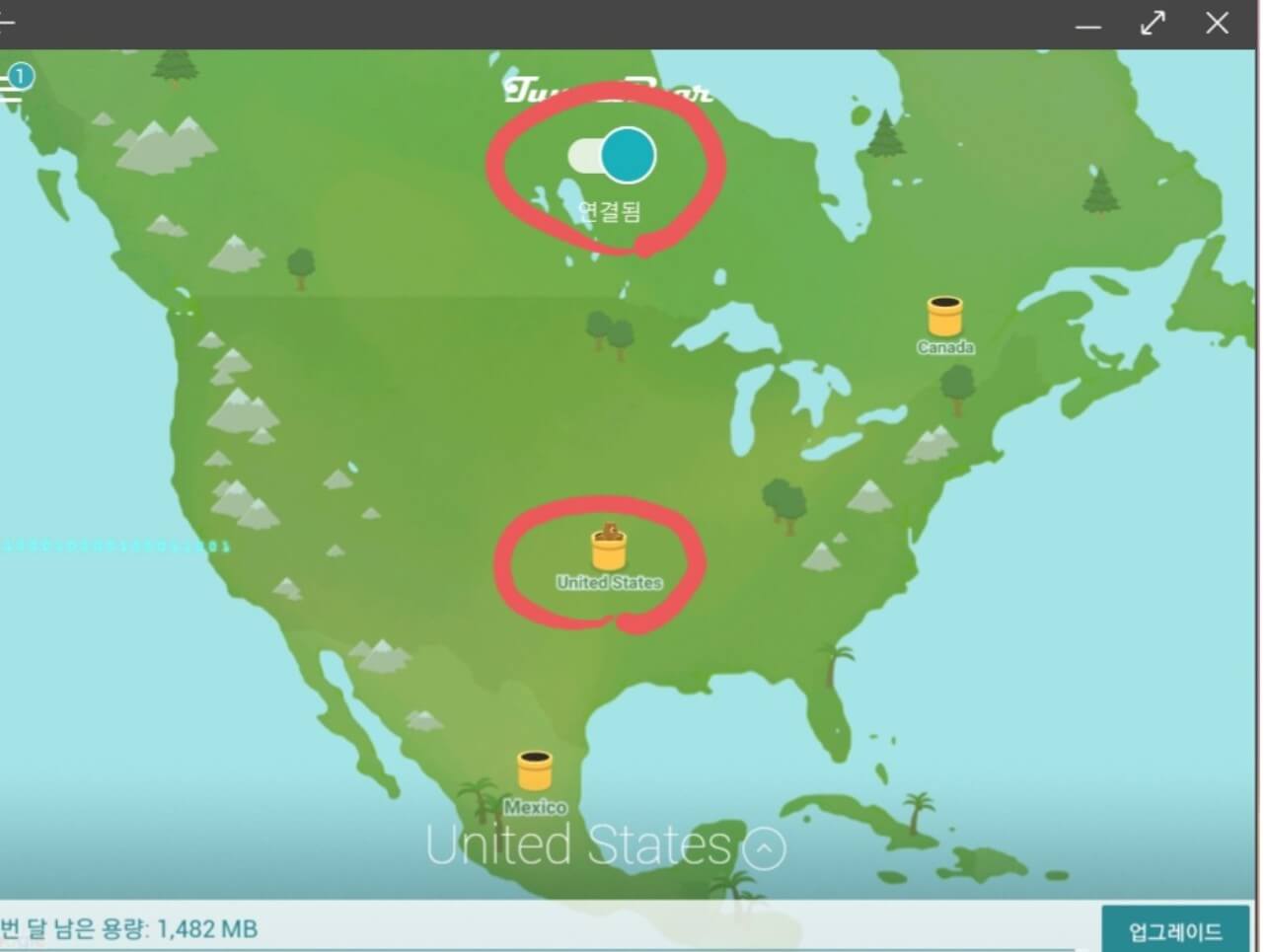 2. 터널 베어 앱에서 미국으로 연결한다.