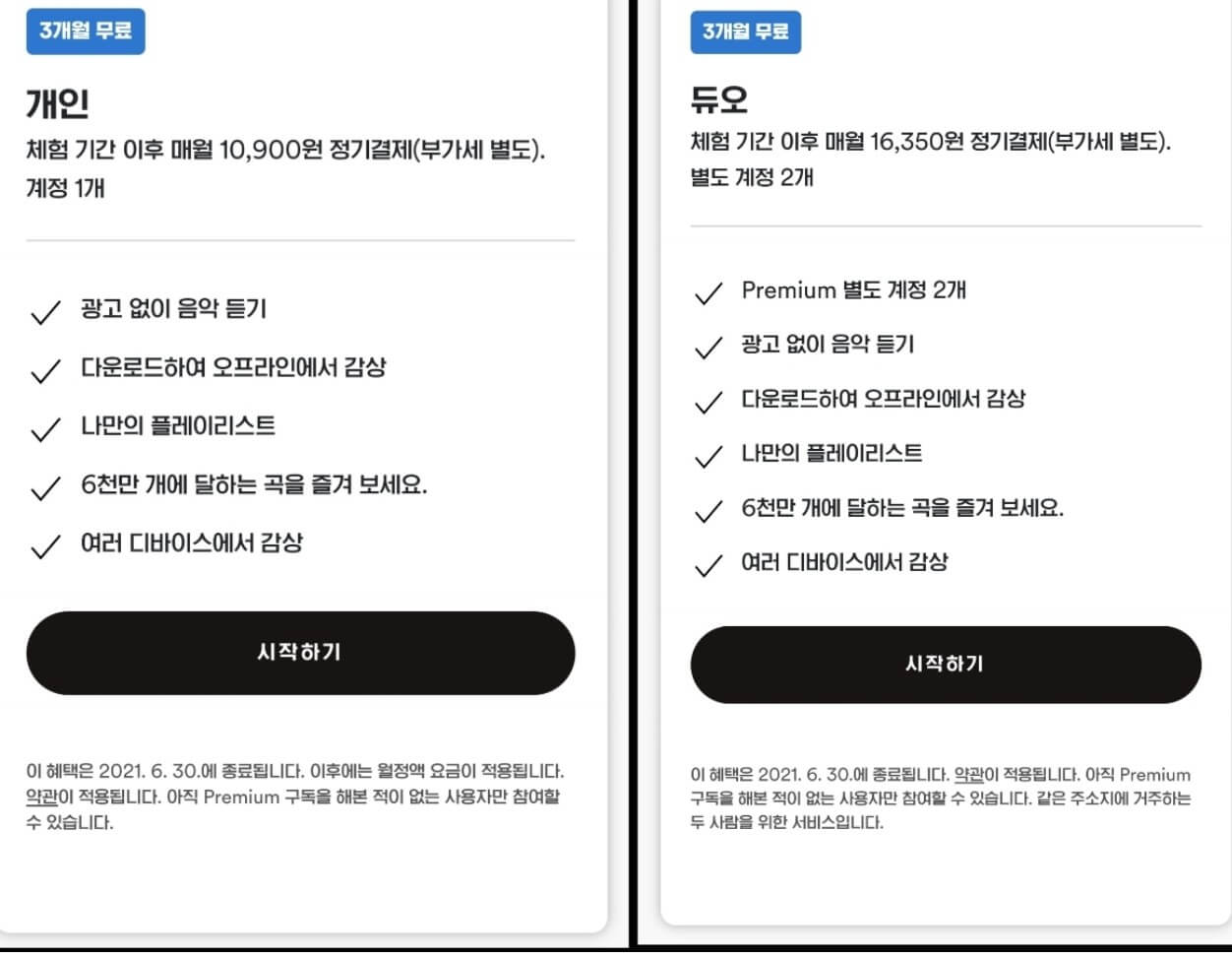 혼자 사용하는 10,900원의 유료 서비스 & 둘이 사용하는 16,900원의 듀오 서비스를 제공합니다.