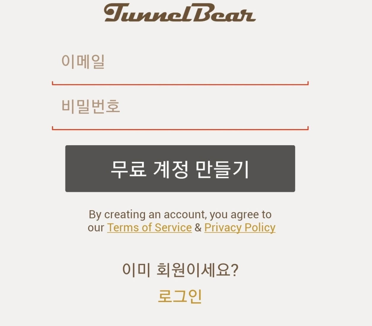 1. 터널 베어 앱을 다운로드하고 회원가입을 합니다.