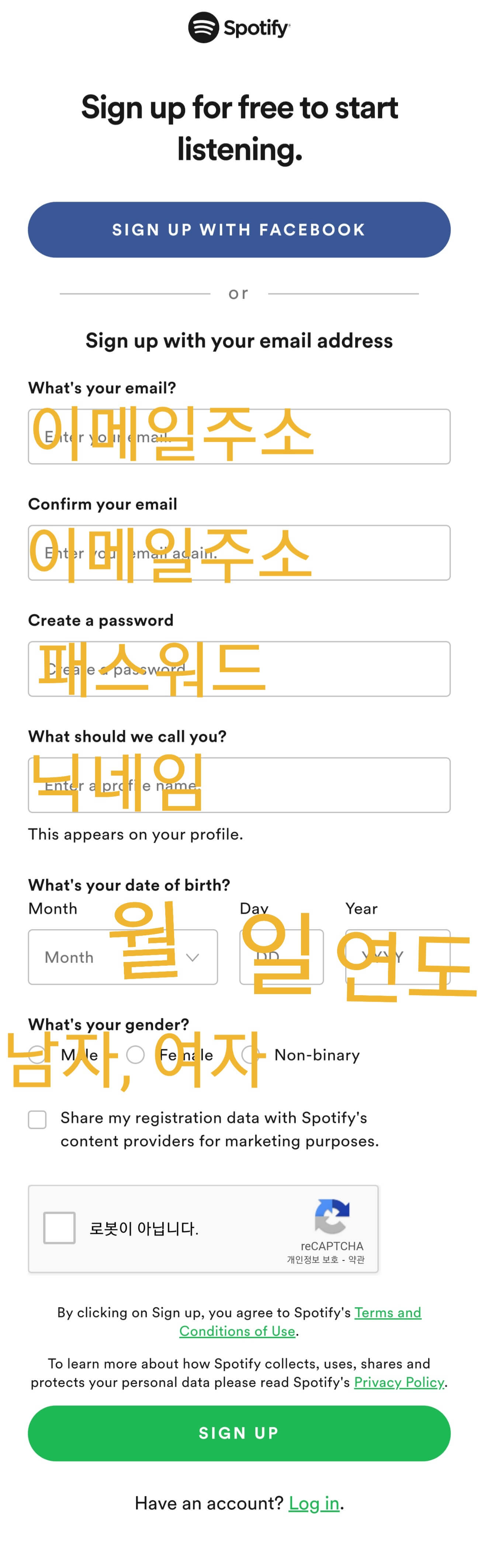 5. 빈칸에 맞춰 작성하고 sign up 클릭한다.