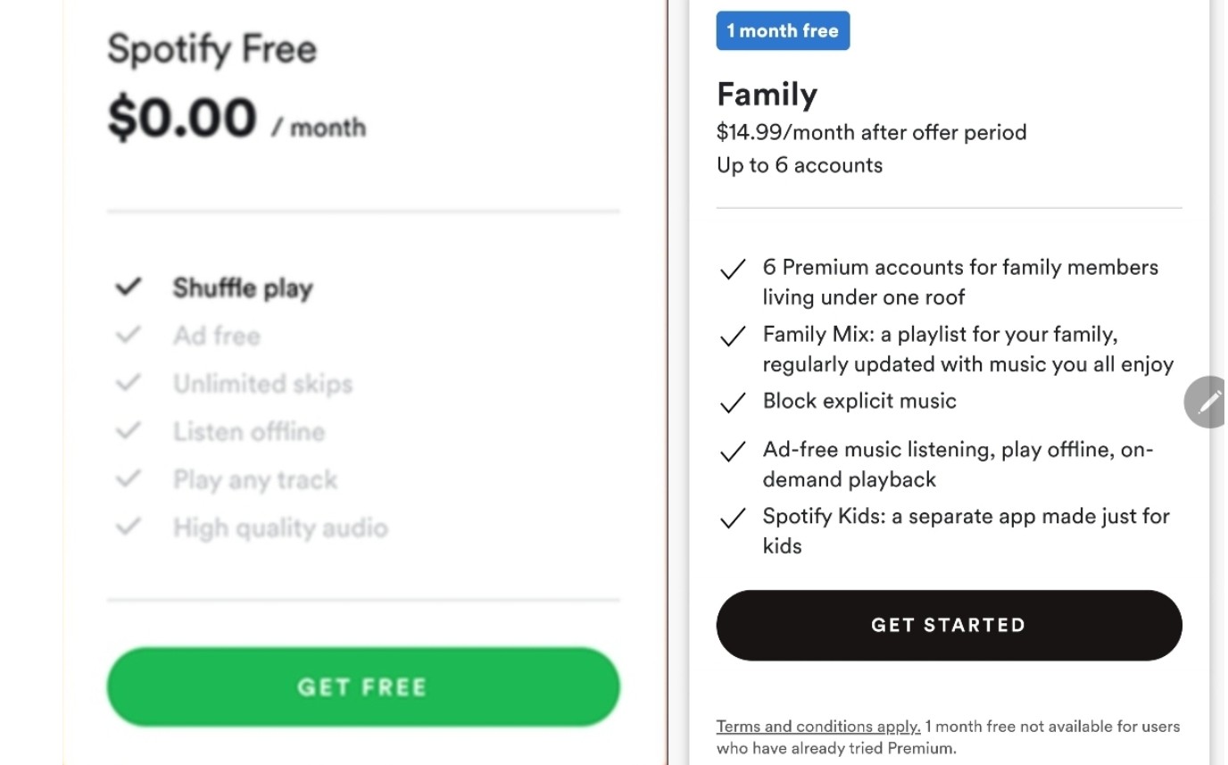 해외의 스포티파이는 무료 서비스 / 유료 서비스 두 가지가 모두 지원됩니다.